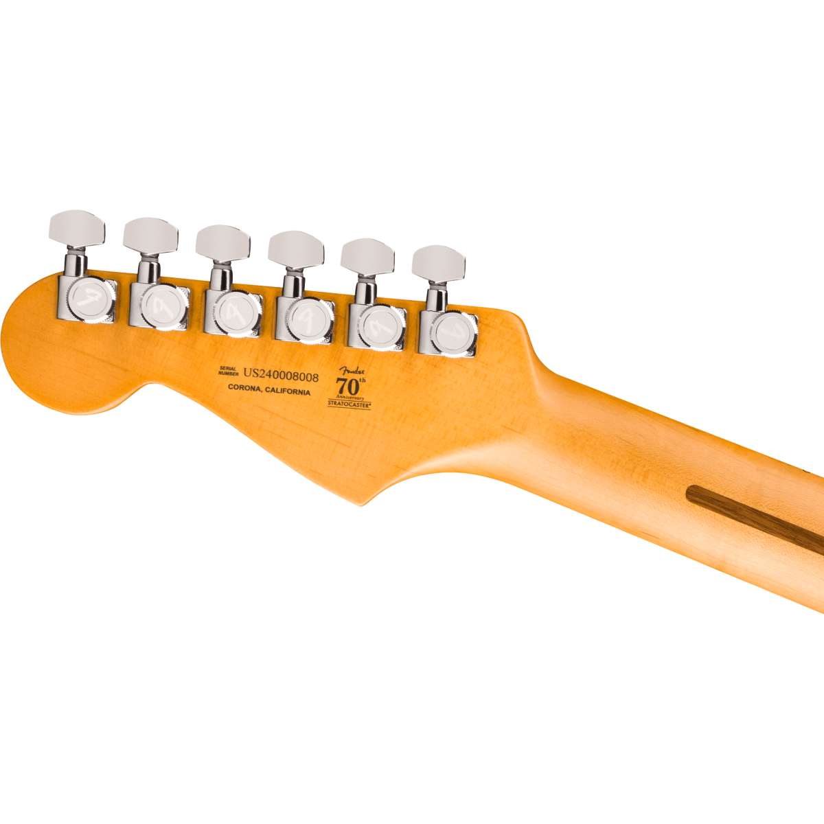 • Trémolo sincronizado American Ultra de 2 puntos con monturas de bloque de acero inoxidable pulido, bloque de acero laminado en frío y brazo Pop-In ;