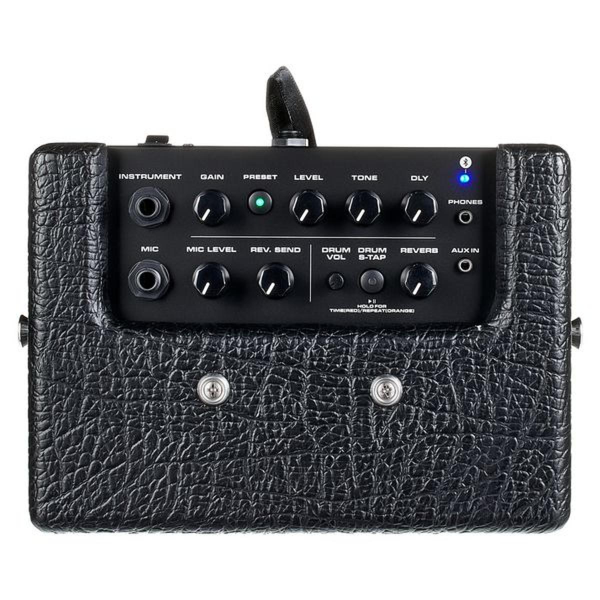 • Amplificador modelador portátil a pilas para guitarra eléctrica ;