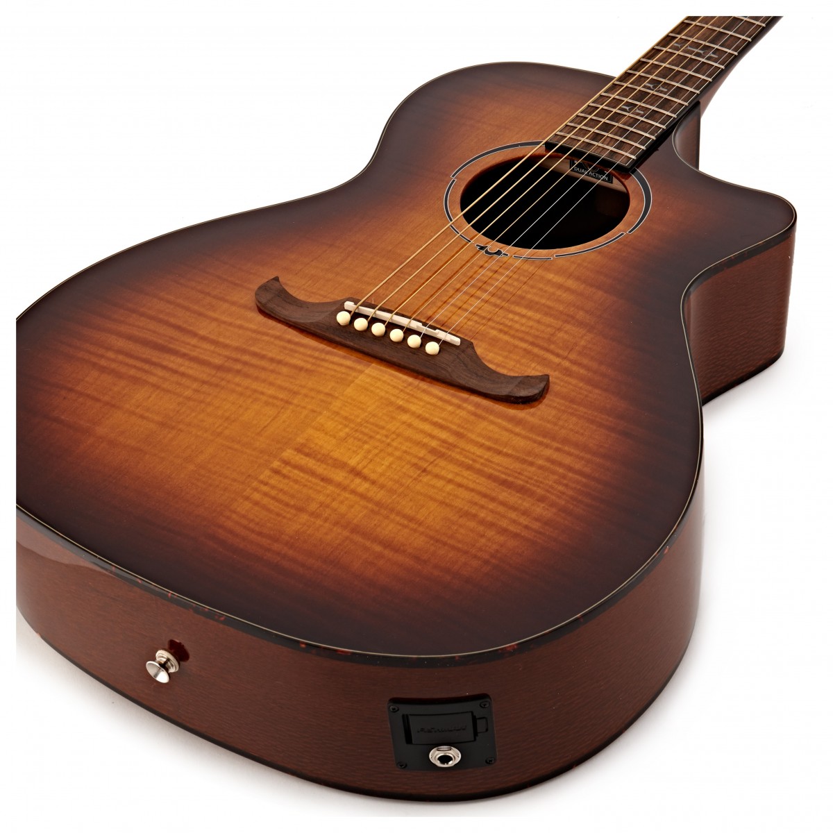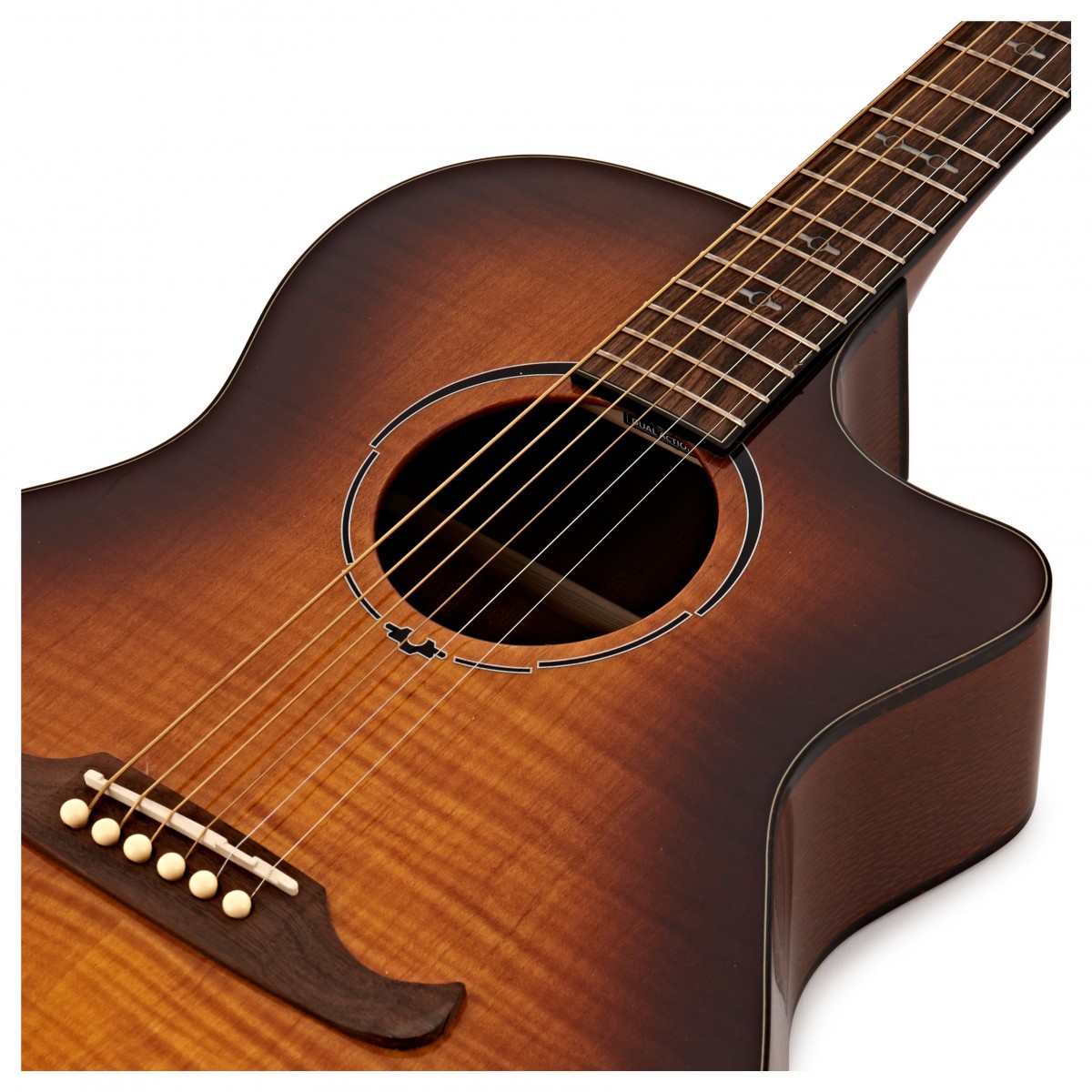 Una construcción de arce laminado flame y madera de encaje no sólo ofrece un aspecto visual llamativo, sino que produce un tono brillante, equilibrado y bien definido. Además, el cuerpo del auditorio cutaway le permite tocar una gran variedad de géneros y técnicas con una respuesta dinámica y versátil.