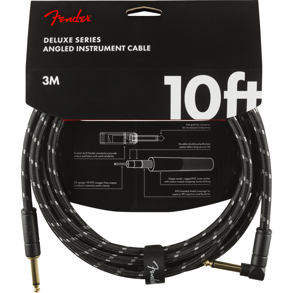 Fender Deluxe Series Instrument Cable, Straight/Angle,3m, Black Tweed