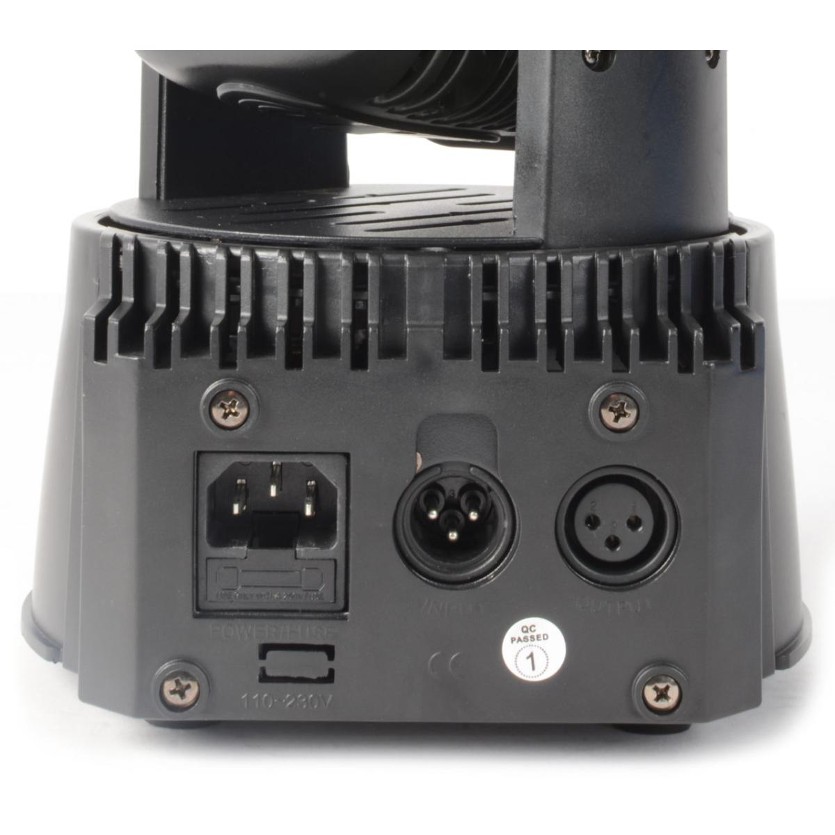 - 5x 18W HEX LEDs de alto brilho - 11 ou 15 DMX canais - Strobe e dimmer 0-100% - Modo auto + Ritmo da musica via microfone interno - Sincronização de master/slave - Velocidade ajustável Pan e Tilt