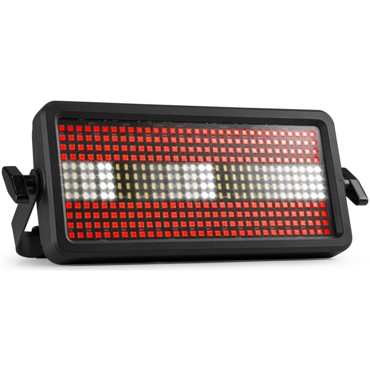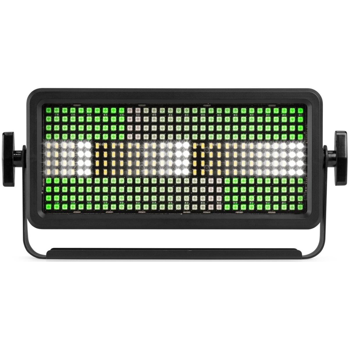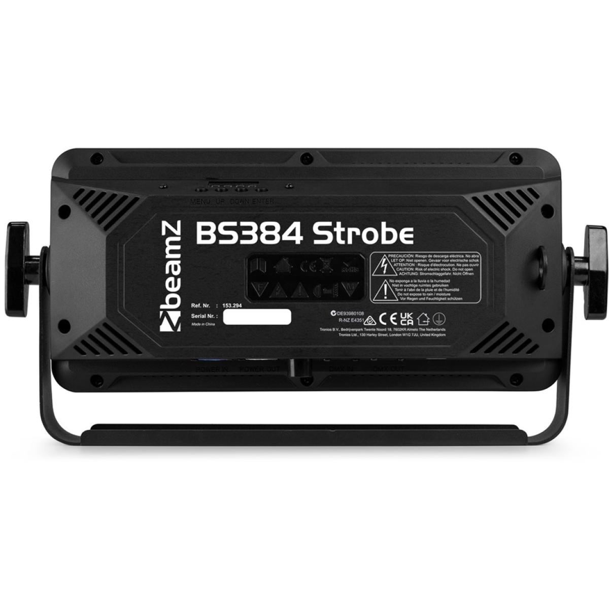 O BS384 é um acessório multiuso e foi especialmente projetado para ser usado como estroboscópio, graças aos 384 LEDs SMD. O painel LED está dividido em diferentes secções e pode piscar em qualquer cor que desejar graças ao seu sistema de mistura RGB. Este aparelho também está equipado com uma faixa de 128 LEDs SMD brancos no centro do aparelho, controláveis em diferentes seções para criar a aparência tradicional de um estroboscópio. O BS384 permite criar efeitos coloridos únicos e o controlo é fácil via DMX ou no modo autônomo com função automática. Adequado para todos os tipos de shows e eventos.