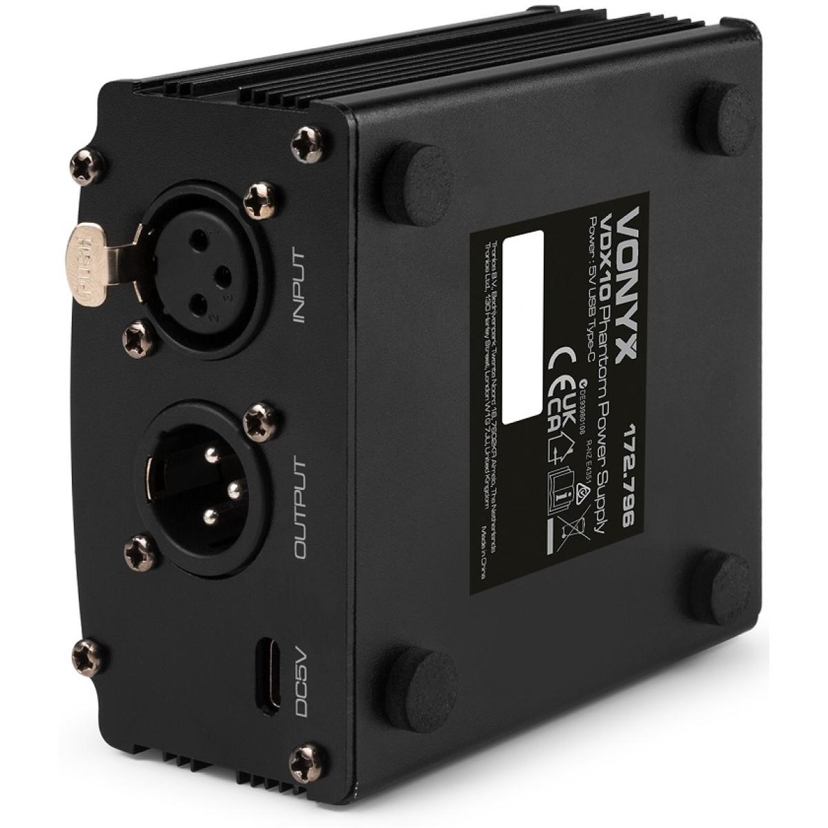 A VDX10 é uma fonte de alimentação Phantom universal de 48V, estável e confiável. Possui entrada e saída XLR balanceadas para fornecer uma conexão em linha ao seu microfone e mixer. Graças ao seu tamanho compacto e design leve, o VDX10 é fácil de transportar e armazenar, para que possa levá-lo onde quer que vá. O VDX10 vem com um adaptador, um cabo XLR M/F e um cabo USB.