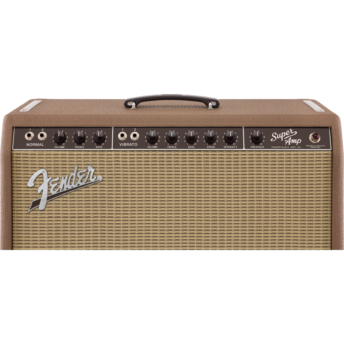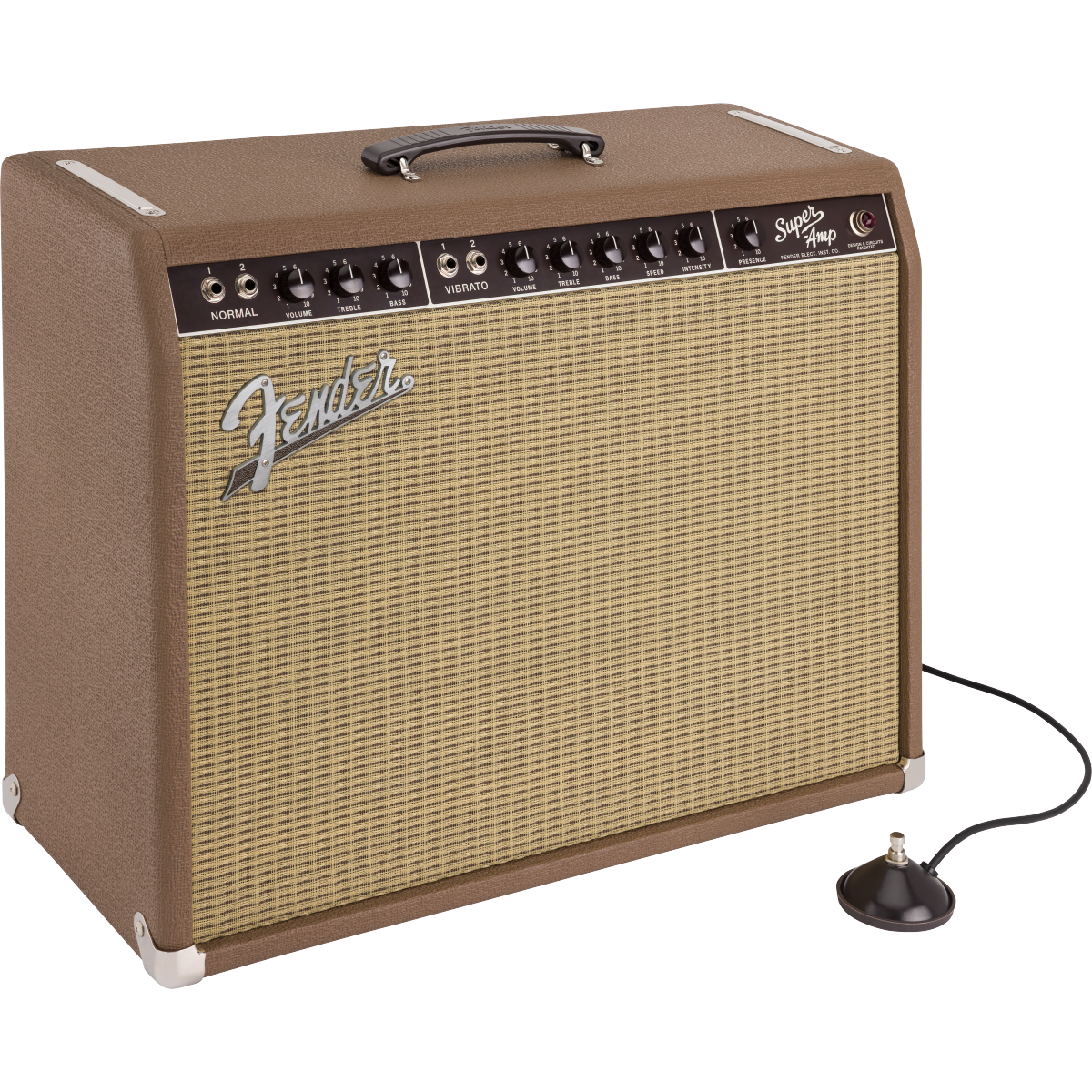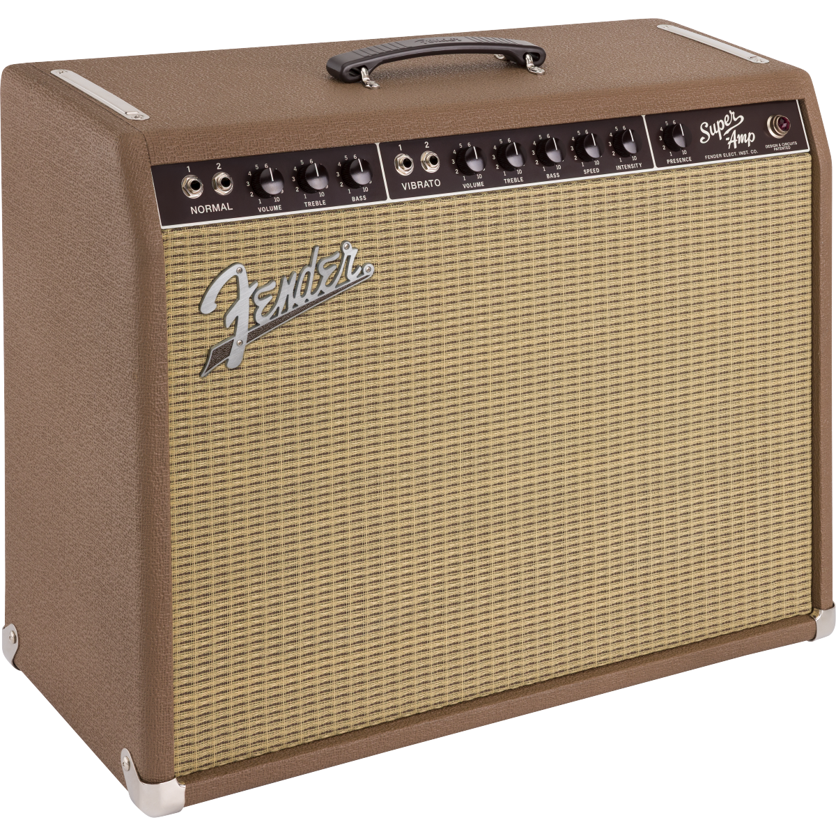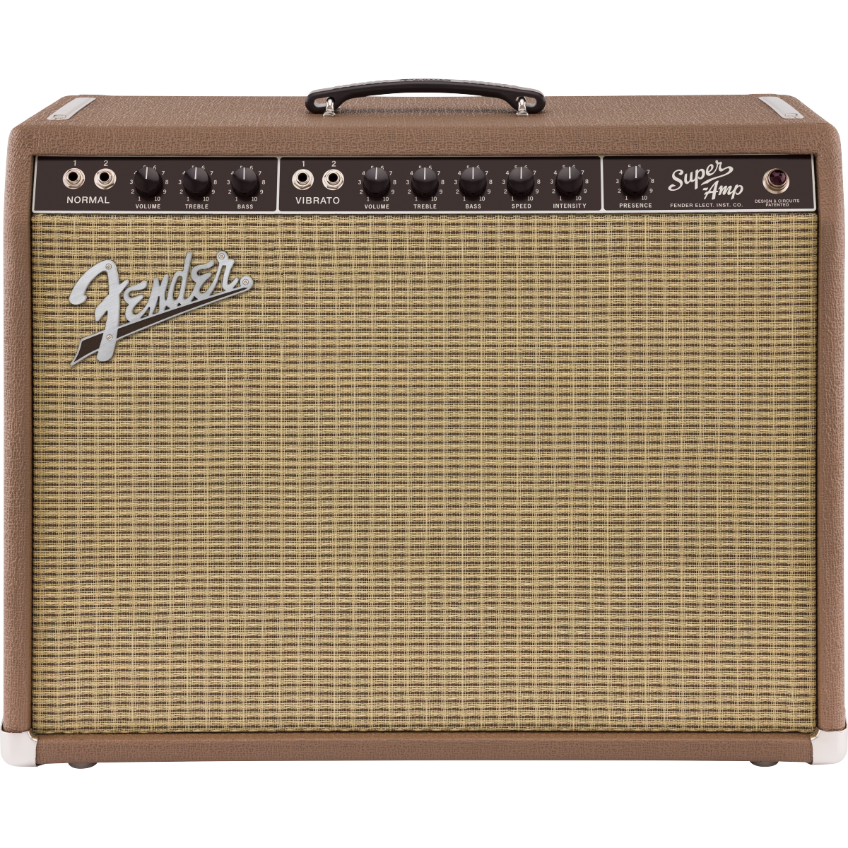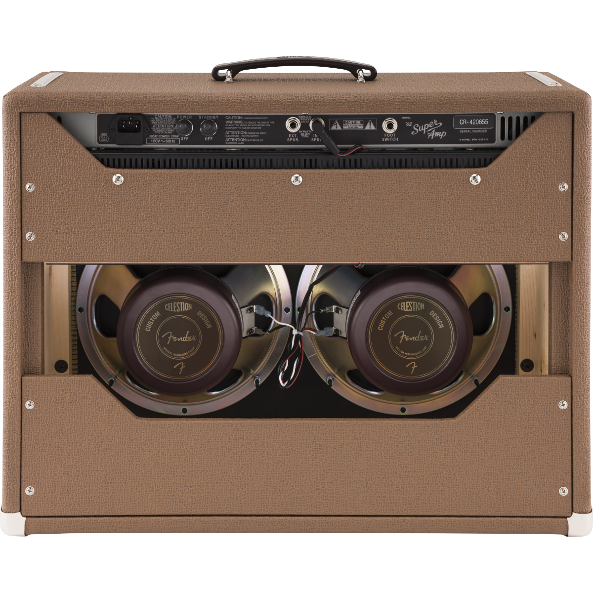 • Cubierta de la caja Fender® '60s brown Nubtex™ y tela de rejilla en color trigo envejecido;