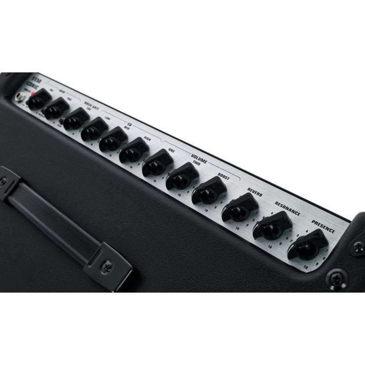 • Controles de graves, medios, agudos y volumen, boost, reverb, resonancia y presencia para los canales 1 + 2 ;