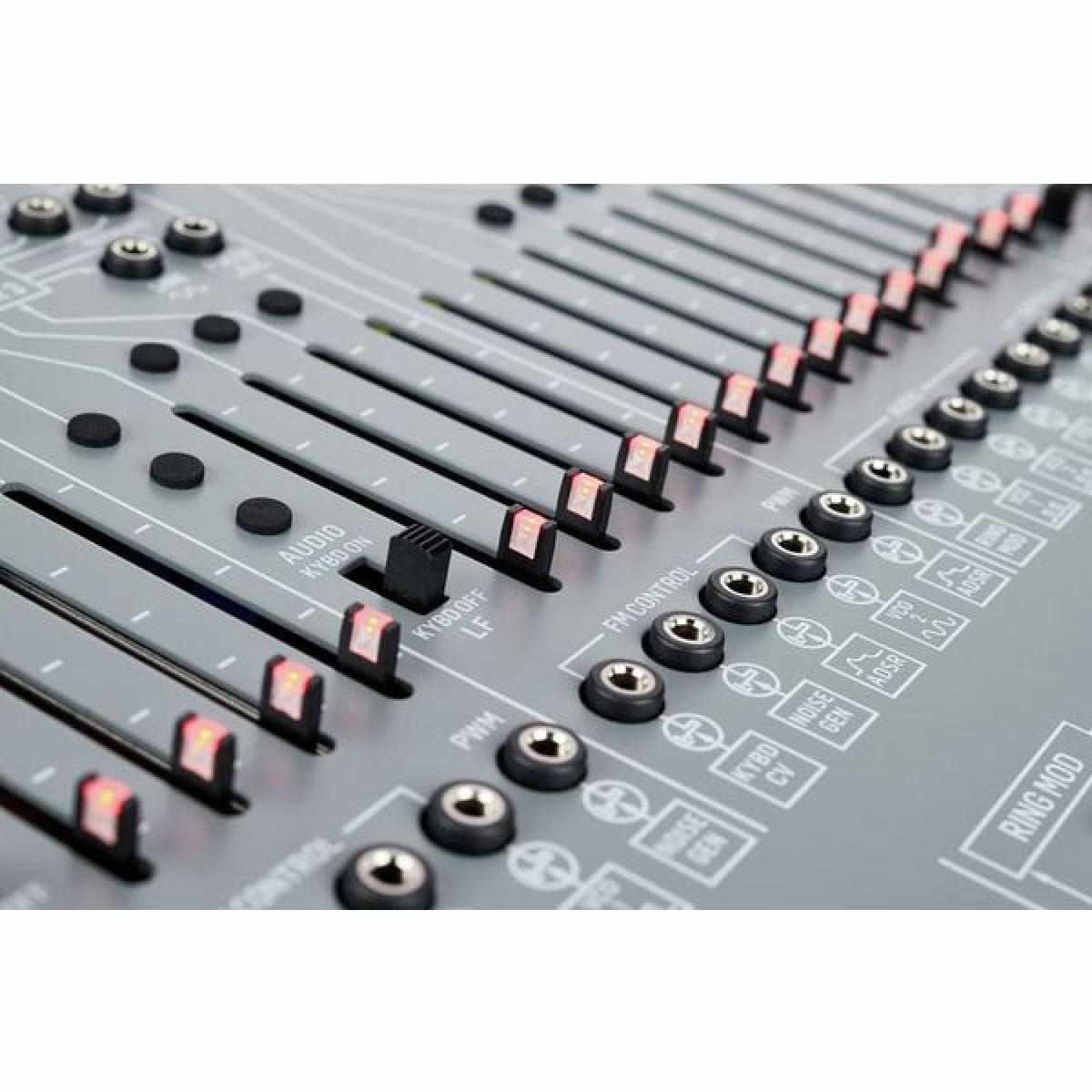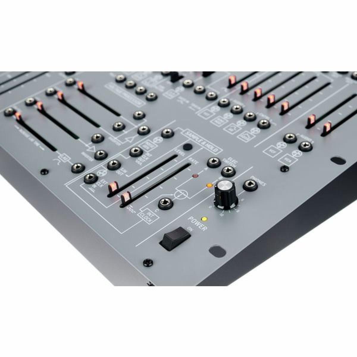 • Amplias opciones de modulación para osciladores y filtros mediante ruta de señal predefinida y cableado libre de todas las secciones mediante cables de conexión (conector jack de 3,5 mm) ;