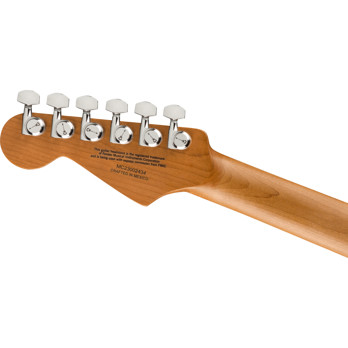 • Diapasón de ébano de radio compuesto de 12«-16» con 24 trastes jumbo e incrustaciones de puntos perlados ;