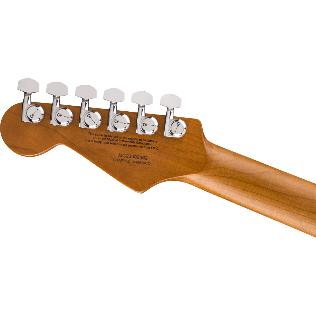 • Diapasón de arce caramelizado de radio compuesto de 12"-16" con 24 trastes jumbo e incrustaciones de puntos perlados ;