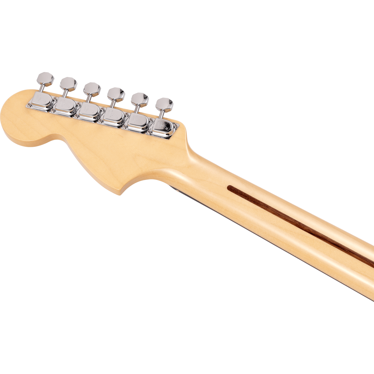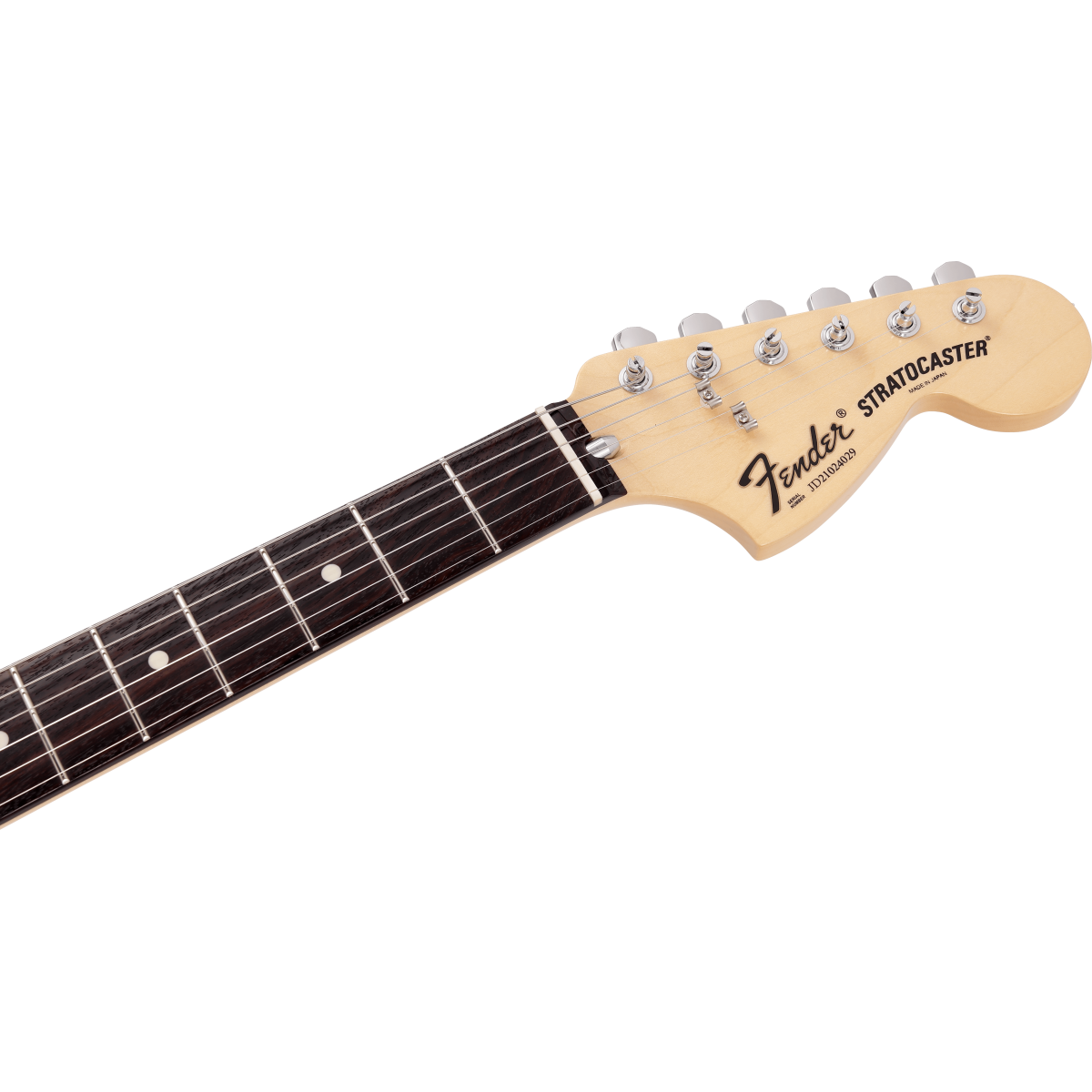 Made in Japan Limited International Color Stratocaster® es una reedición de la serie desarrollada en EE.UU. a principios de los años 80 basada en la Serie Tradicional Made in Japan, y es un modelo con un magnífico color distintivo utilizando el nombre de la ciudad del mundo. es. Tenemos una línea de especificaciones de estilo años 70 como el logotipo moderno, con modelos cuidadosamente seleccionados de colores distintivos. Mediante el uso de dibujos de productos de EE.UU. y el pedido de muestras de color, que son el punto más importante de este producto, directamente desde los EE.UU., podemos revivir con alta calidad hecha en Japón, mientras que hereda adecuadamente la mentalidad de nuestro país de origen. Al tiempo que se mejora la reproducibilidad detallada, como la especificación del número de serie en el cabezal, no sólo el diseño, sino también el afinador de tipo vintage y el puente de trémolo sincronizado de estilo vintage de 6 platinas garantizan la jugabilidad de la Fender ortodoxa.
