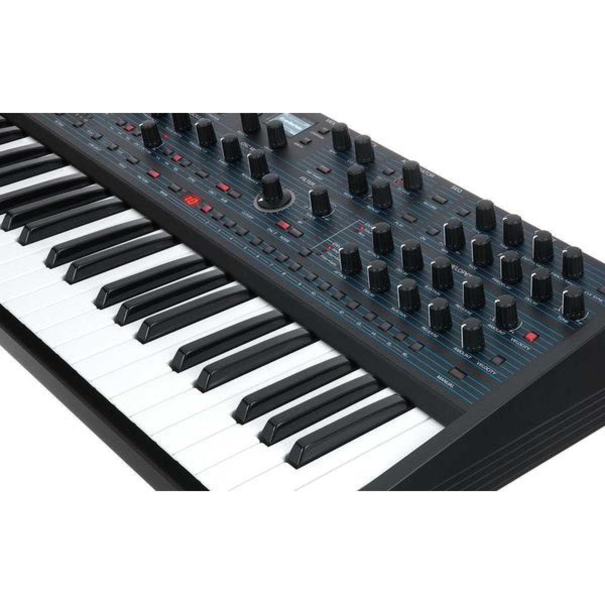 • Teclado Fatar semiponderado con 3,5 octavas, 44 teclas con aftertouch de canal (mono) con cantidad bipolar ;