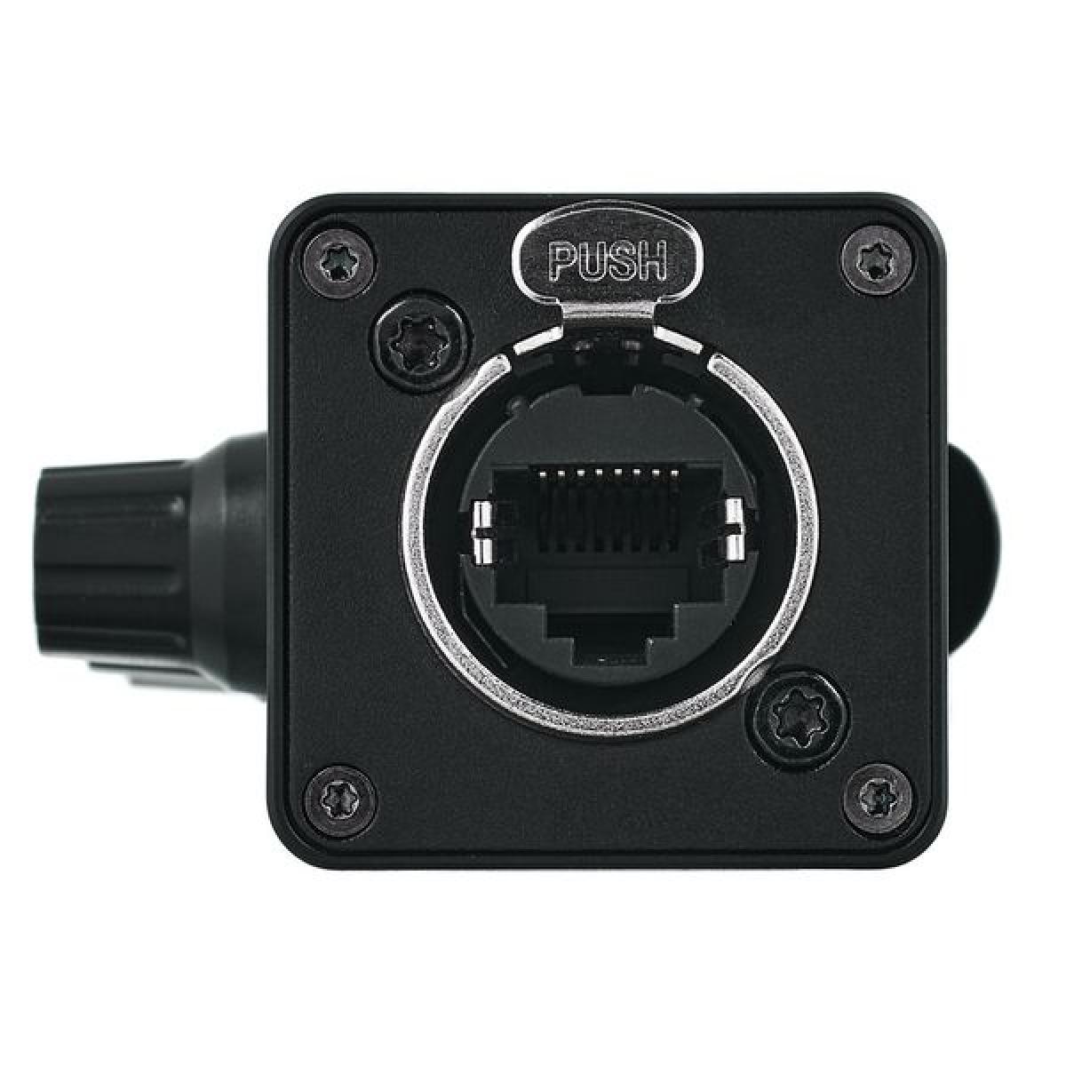 • El cable Cat 5 transmite tres canales de audio y alimentación de 9 voltios (PoE) (power over ethernet) ;