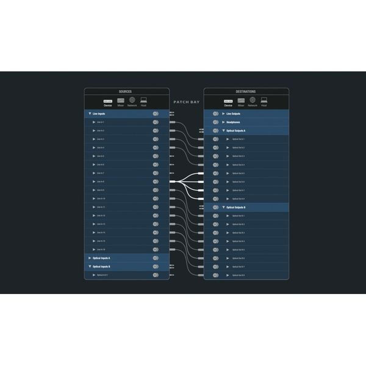 • Funciones de sala de control como talkback y selección de monitores A/B/C a través del software CueMix Pro ;