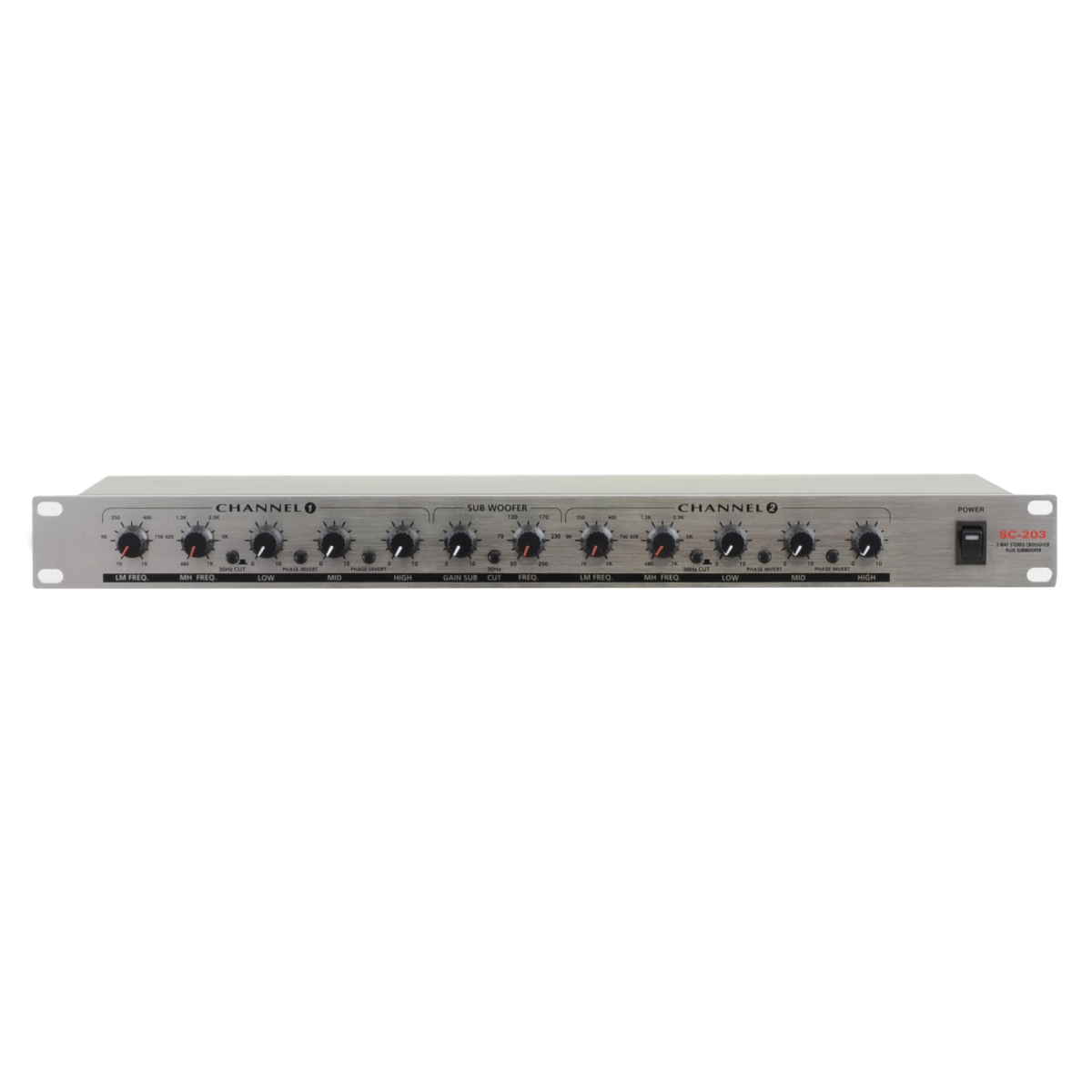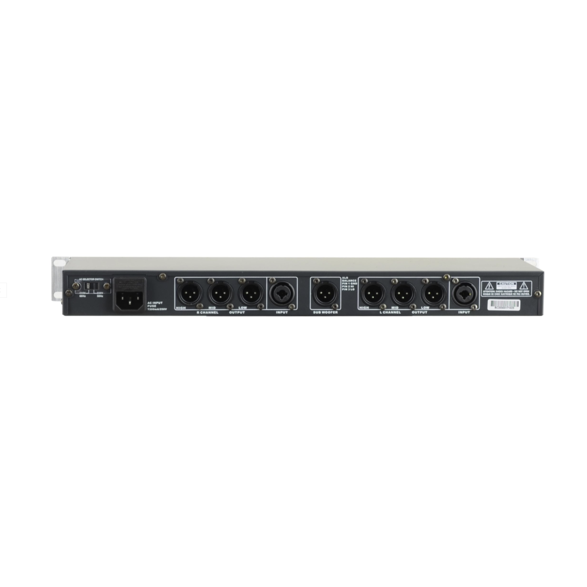 Referência: AAASC203 .Tipo de cruce: estéreo de 3 vías + Subwoofer .Rango de cruce: Subwoofer: 50Hz-250Hz, 24 / 10dB Bajo / Alto: 250Hz-6KHz, -24 / 10dB Medio / Alto: 480Hz-7KHz, -24 / 10dB .Tipo de filtro (Solpe): 2do orden, 12dB / octava .Tipo de entrada: XLR balanceado o no balanceado 1/4 " .Impedancia de entrada: 100 KΩ .Impedancia de salida: 220Ω .Respuesta frecuente: 25Hz-25KHz, + 0 / -1dB .Ruido: > -80dB .THD: 0,05% .Voltaje de corriente alterna: 100-120V / 60Hz o 200-240 V / 50 Hz VCA .Dimensión: 482 X165 X 44 mm .Peso: 2,6 kg
