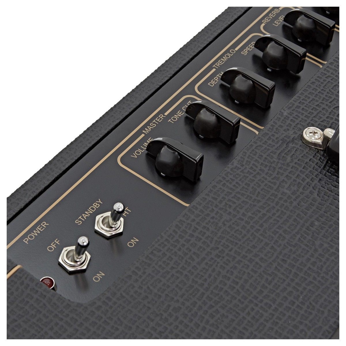 El combo AC15C1 utiliza 3 válvulas de preamplificación 12AX7 y un par de válvulas EL84 para accionar un solo altavoz de 12"Celestion. Todos los modelos en el Custom Series ofrecen un jack de salida conmutable de 8/16 ohmios para alimentar un gabinete de altavoces externos cuando necesite hablar con un poco más de autoridad; el uso de este jack silenciará los altavoces internos. También puede crear un sonido más completo ejecutando un gabinete adicional de 16 ohmios junto con los altavoces internos con la segunda toma para altavoces de extensión del AC15C1.