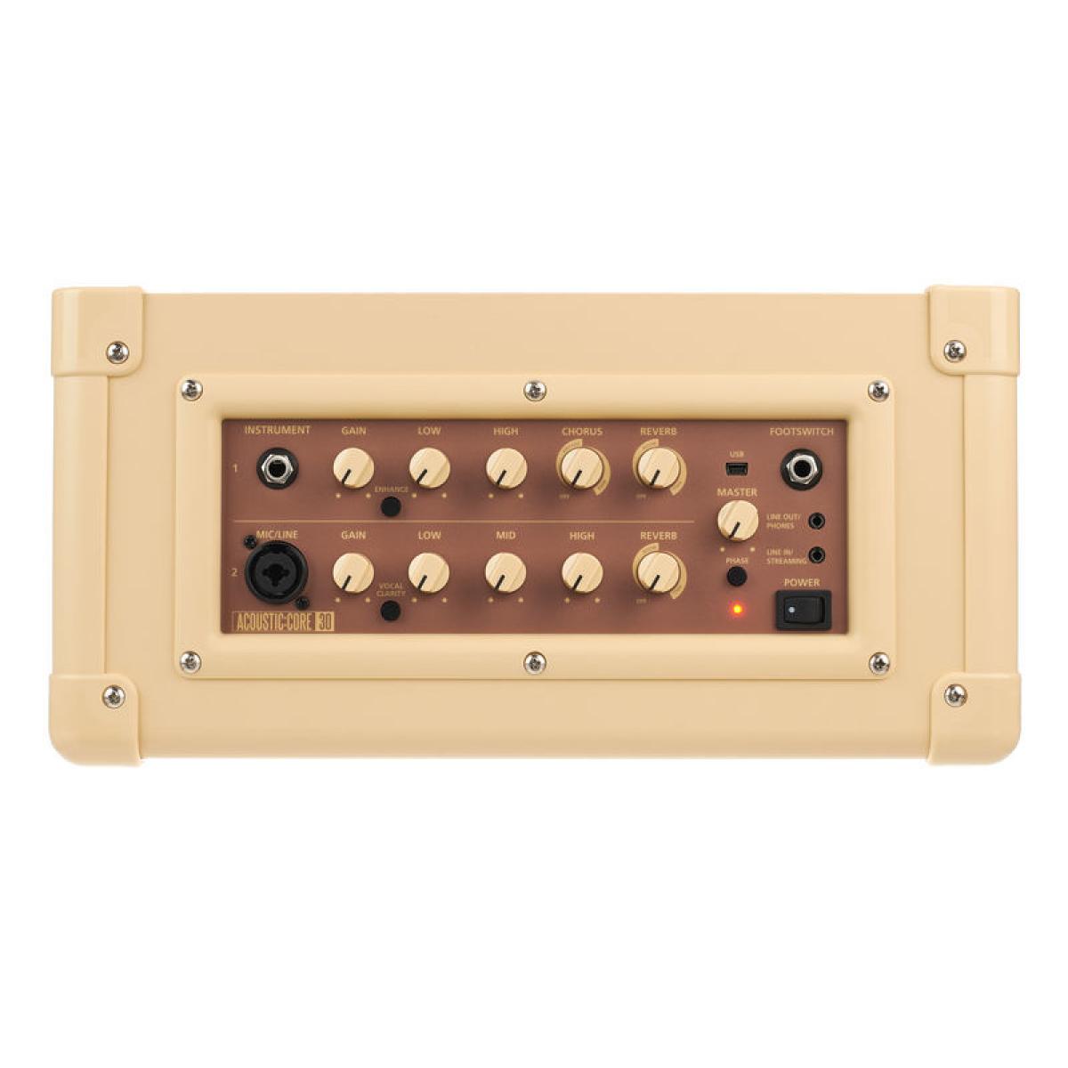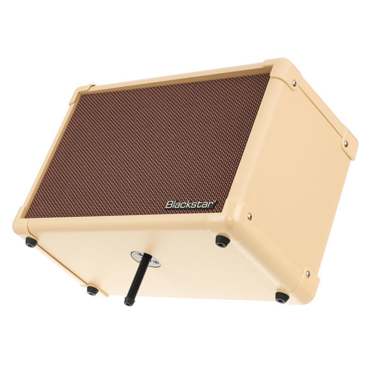 Con el Blackstar ACOUSTIC:CORE 30 el fabricante británico amplía su gama de productos con un amplificador de guitarra acústica que es muy fácil de usar debido a sus funciones ordenadas y reproduce una imagen de sonido limpia y sin adulterar. Dos canales controlables por separado para el instrumento y el micrófono pueden ser convenientemente controlados a través de Equalizer y efectos. El primer canal está equipado con un jack de 6.3 mm y contiene un Equalizerde 2 bandas, dos diferentes Chorus- y Reverb-efectos. El segundo canal tiene un conector combinado para una clavija de 6,3 mm, así como un conector XLR, de modo que se puede conectar un micrófono o incluso un segundo instrumento. Además, el segundo canal está equipado con 2 Reverb-...efectos. Una toma de auriculares para enchufes de 3,5 mm estéreo permite realizar ensayos silenciosos incluso durante los períodos de descanso y una tomaAux-In permite la conexión a una fuente externa como un teléfono inteligente, una tableta, etc. Para el volumen total, el Blackstar ACOUSTIC:CORE 30 está equipado con un bote deMaster-Volume. Además, se puede conectar un interruptor de pie opcional.