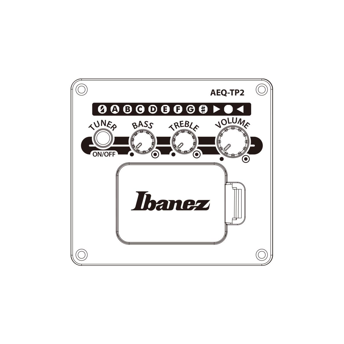 Electrónica: preamplificador Ibanez AEQ‑TP2 con afinador y pastilla T‑bar undersaddle