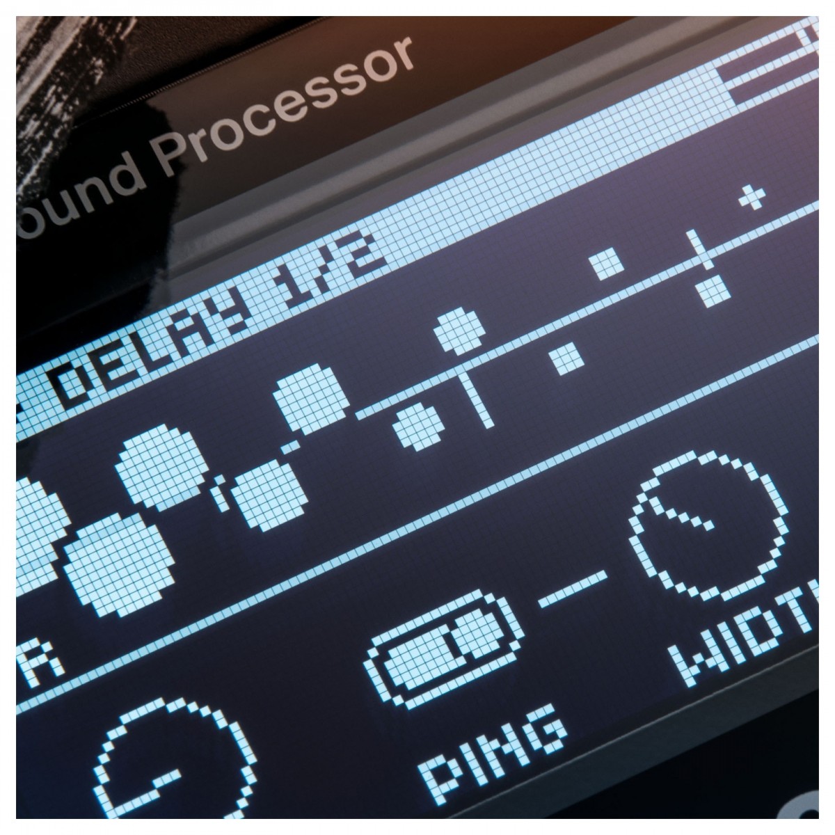 La amplia gama de efectos digitales de estudio a su disposición le permite ajustar su sonido con la máxima precisión utilizando los controles giratorios integrados. La amplia gama de efectos digitales incluye desde los clásicos reverb y delay hasta warble, compresor y enfoque de graves. Navegar entre los ajustes y parámetros es muy sencillo gracias a la intuitiva disposición de los controles y a la nítida pantalla OLED que proporciona información visual instantánea.