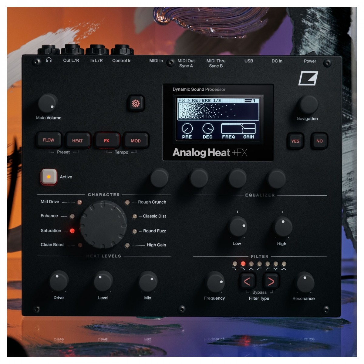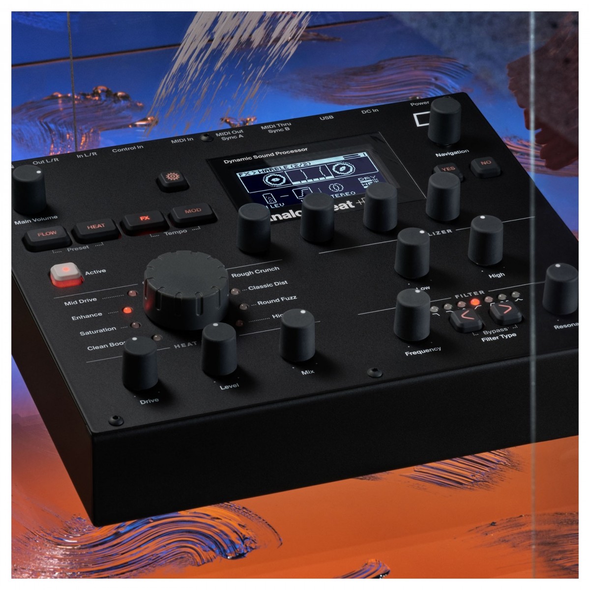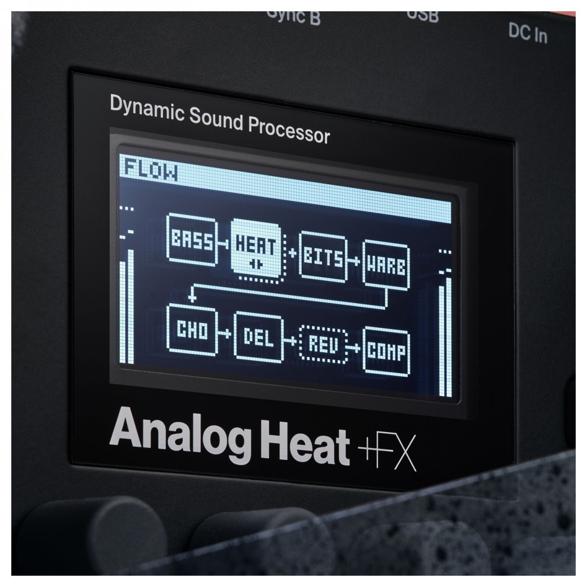 Ampliando el diseño del Analog Heat original, esta nueva y mejorada versión conserva todas las potentes funciones y controles del original con nuevas formas de interactuar y crear efectos. Una de las novedades más destacadas es la introducción del bloque "Flow", que permite reordenar los efectos para crear un flujo de señal personalizado que da como resultado timbres y un carácter tonal únicos.