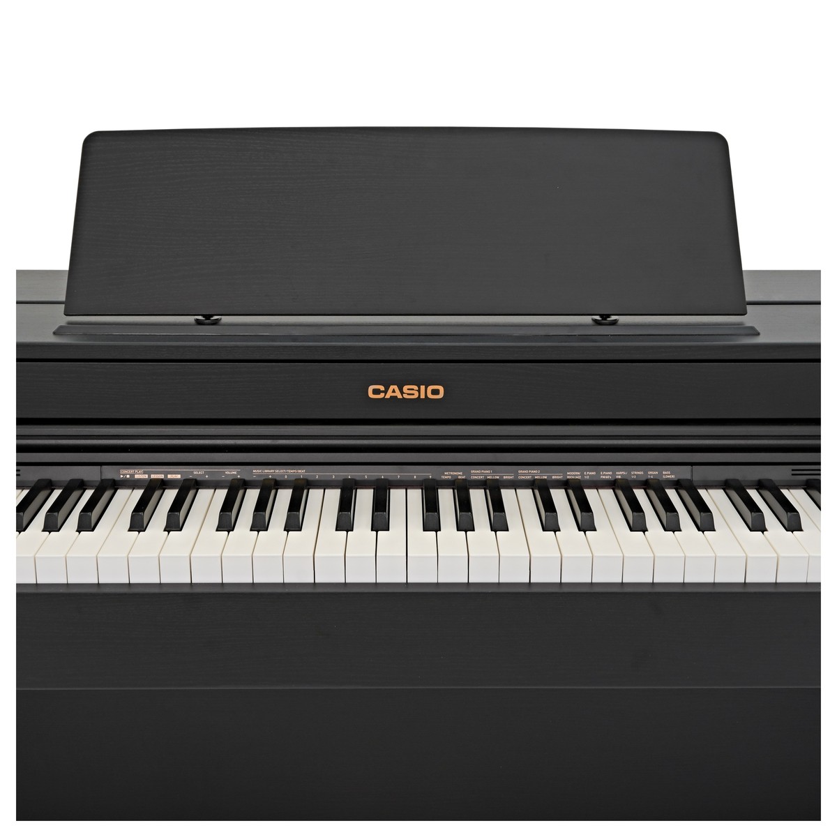 Piano digital Casio Celviano AP 470, negro Características principales Muestreo mejorado para sonidos más auténticos Sistema de altavoces mejorado Compatible con la aplicación Chordana Piano Play para iOS / Android Teclas más auténticas de ébano / marfil con auriculares naturales Piano digital Casio Celviano AP 470, vista global en negro Sucesor del AP 460, el Casio AP 470 incluye algunos de los elementos que hicieron el éxito de su antecesor y trae algunas mejoras que le permiten cubrir las necesidades de los pianistas modernos. Por lo tanto, como el sonido renovado de los auriculares para ofrecer una experiencia de ensayo silenciosa ideal y la salida de línea le permite conectar su piano a un sistema de sonido PA, una característica útil en muchas situaciones. Este piano digital también es compatible con la aplicación Chordana Play, lo que lo convierte en un instrumento ideal para pianistas en crecimiento. un piano de cola. Ahora, con un módulo de memoria expandido, AiR puede tomar muestras más largas que los modelos anteriores. ¿Qué significa esto para ti? Las muestras más largas decaen de forma más natural, sin repetición ni otros efectos artificiales.Cuando toca un piano de cola, el sonido que escucha no es una sola nota. Otras cuerdas con frecuencias asociadas también resuenan, agregando su sonido para proporcionar una resonancia excepcionalmente rica. Casio domina digitalmente esta respuesta para garantizar que cada actuación sea expresivamente única. Las 88 teclas responderán continuamente a la fuerza detrás de cada toque. Todos los matices de una frase pianissimo, seguidos de la intensidad de una frase muy fuerte, serán replicados con exquisitos detalles. Entonces, ya sea que esté recitando Debussy o Rachmaninoff, puede tener una experiencia verdaderamente orgánica. Chordana Play for Piano appCasio entiende que la tecnología juega un papel importante en la educación, ¡y aprender a tocar el piano no es una excepción! Ahora puede conectar su teléfono inteligente o tableta al piano a través de un cable USB para desbloquear una variedad de funciones educativas. Puede elegir entre los 60 PDF incluidos de partituras en la aplicación Chordana Play for Piano o incluso agregar sus propios archivos PDF. Cuando se conecta a través de USB, puede configurar su unidad de pedal simple o triple como un cambiador de página, lo que le permite concentrarse en la interpretación. Si desea información sobre piezas individuales y compositores, la aplicación también tiene descripciones internas enumeradas en la PTNA (Asociación Nacional de Profesores de Piano). Para un enfoque más interactivo, la aplicación Chordana Play for Piano incluye archivos MIDI que le permiten tocar un ventana de rollo de piano. Con 201 canciones diferentes para elegir, esta biblioteca incluye canciones que incluso los principiantes pueden escuchar y tocar. Cambie el tempo, transponga a una clave más fácil o use la función de repetición AB para dominar pequeñas partes de la canción con la que está luchando. ¡Incluso puede tomar clases usando el teclado en pantalla y seguir su progreso usando un sistema de puntuación! Y si eso no es suficiente, puede importar sus propios archivos MIDI para tocar junto con su música favorita. Pero la aplicación Chordana Play for Piano no es solo para aprender. Al conectar el piano Casio, ahora puede usar su teléfono inteligente o tableta para ajustar varias funciones. Puede controlar la configuración principal, como la voz que está utilizando, la configuración del metrónomo y la configuración de reverberación de forma rápida y eficiente. Si realmente desea ajustar su tono, puede comenzar a experimentar con la respuesta del martillo, la respuesta de las cuerdas, la configuración de la cubierta, las opciones de capa, el teclado dividido, la configuración de grabación y más. Para obtener más información, visite el sitio web de Casio Increíble precisión El Casio AP 470 cuenta con Casio Tri-Sensor Scaled Hammer Action II de Casio. Diseñado para ofrecer la experiencia de interpretación más natural y auténtica, el AP 470 fue meticulosamente diseñado para recrear el peso, el tacto y la fuerza de un piano de cola. El piano digital está hecho con teclas de ébano y marfil de textura simulada, replicando el toque y jugabilidad de un piano de cola acústico. Y gracias al nuevo sistema de tres sensores, puede capturar con precisión el carácter tonal de su interpretación con el AP 470. El Casio AP 470 le permite actuar con total profundidad, carácter y fuerza. Conectividad externa Para una escucha silenciosa, el AP 470 ahora tiene dos salidas de auriculares, ubicadas en la parte frontal del instrumento. Para aquellos que funcionan con otra amplificación, el AP 470 también tiene salidas de línea izquierda y derecha de 1/4 "en el panel trasero. El AP 470 continúaEl compromiso de Casio de proporcionar conectividad USB "compatible con su clase" en los pianos digitales Celviano. permite que el AP 470 se use con computadoras Mac o Windows sin la necesidad de descargar controladores.El MIDI USB compatible con la clase también permite que el AP 470 se use como un controlador con el iPad de Apple simplemente usando el Conexión de cámara Apple Especificaciones Teclado Número de teclas: 88 Acción: Teclado con acción de martillo Tri-Sensor II Teclas de acabado: Teclas de ébano y marfil simuladas Sensibilidad al tacto: 3 niveles de sensibilidad, apagado Fuente de sonido: Fuente de sonido multidimensional Morphing AiR Polifonía máx. : 256 Simulador acústico Respuesta de martillo: Sí Resonancia de cuerdas: Sí (4 niveles) Resonancia del apagador: Sí (4 niveles) Ruido del apagador: Sí (Encendido / Apagado) Simulador de cubierta: Sí (4 niveles) Simulador de desactivación de teclas: Sí Ruido de la acción principal: Sí (On / Off) Efectos digitales Simulador de salón: 4 tipos Chrous: 4 tipos Brillo: SimDSP: incorporado en algun