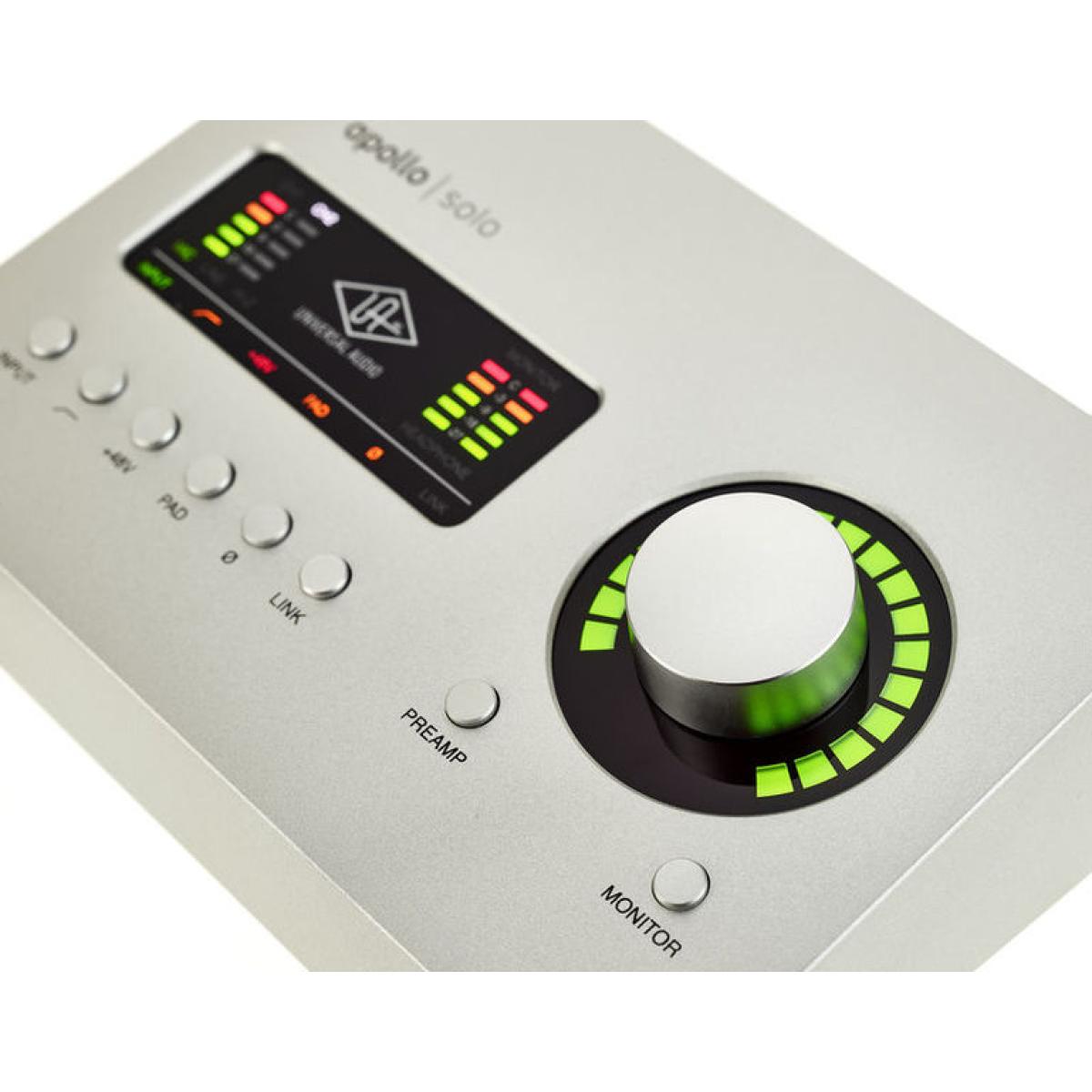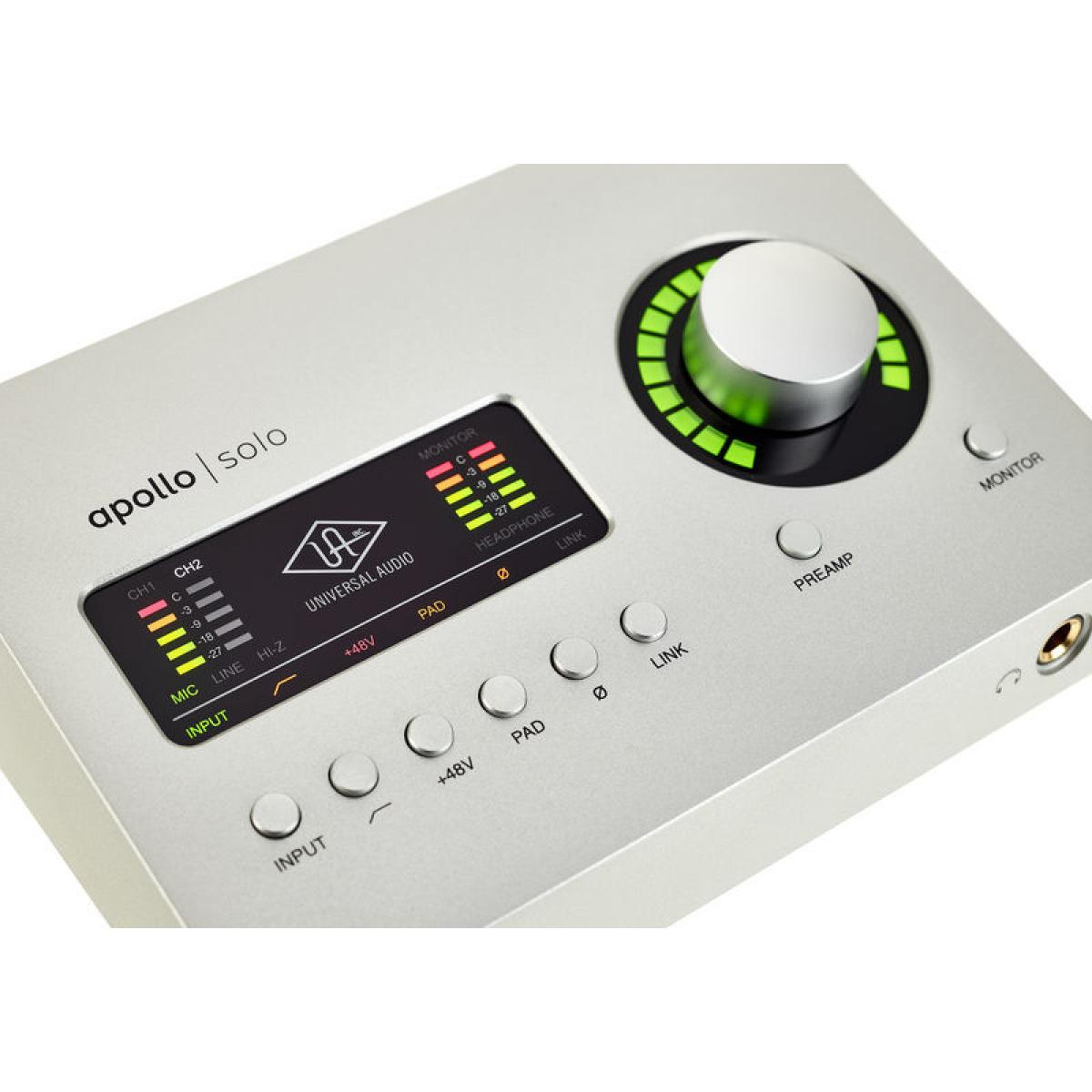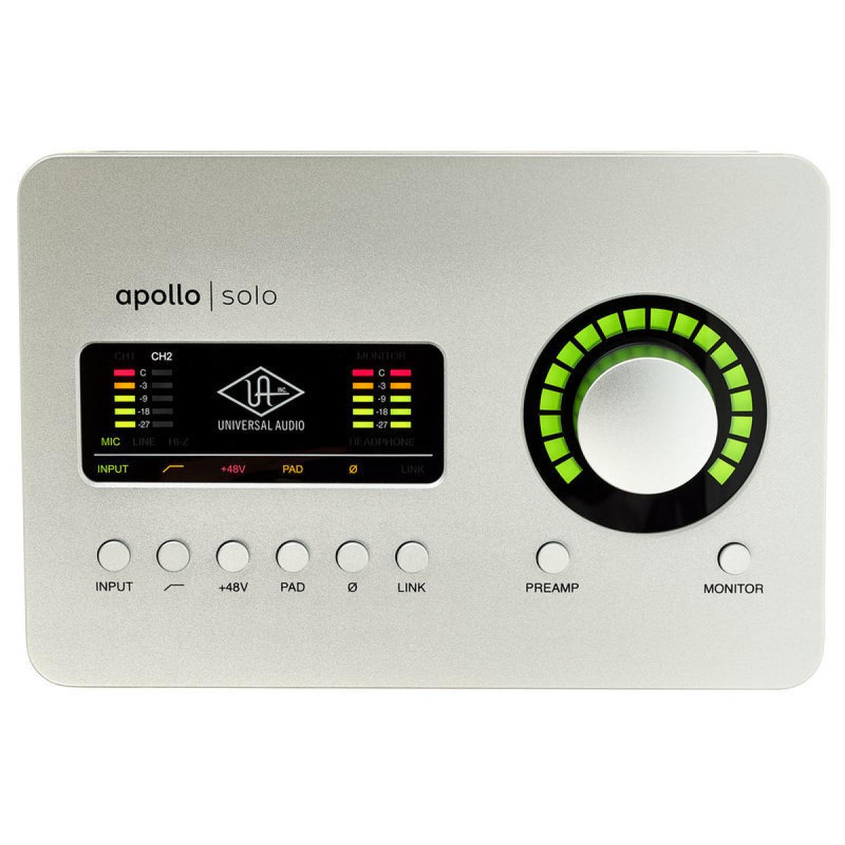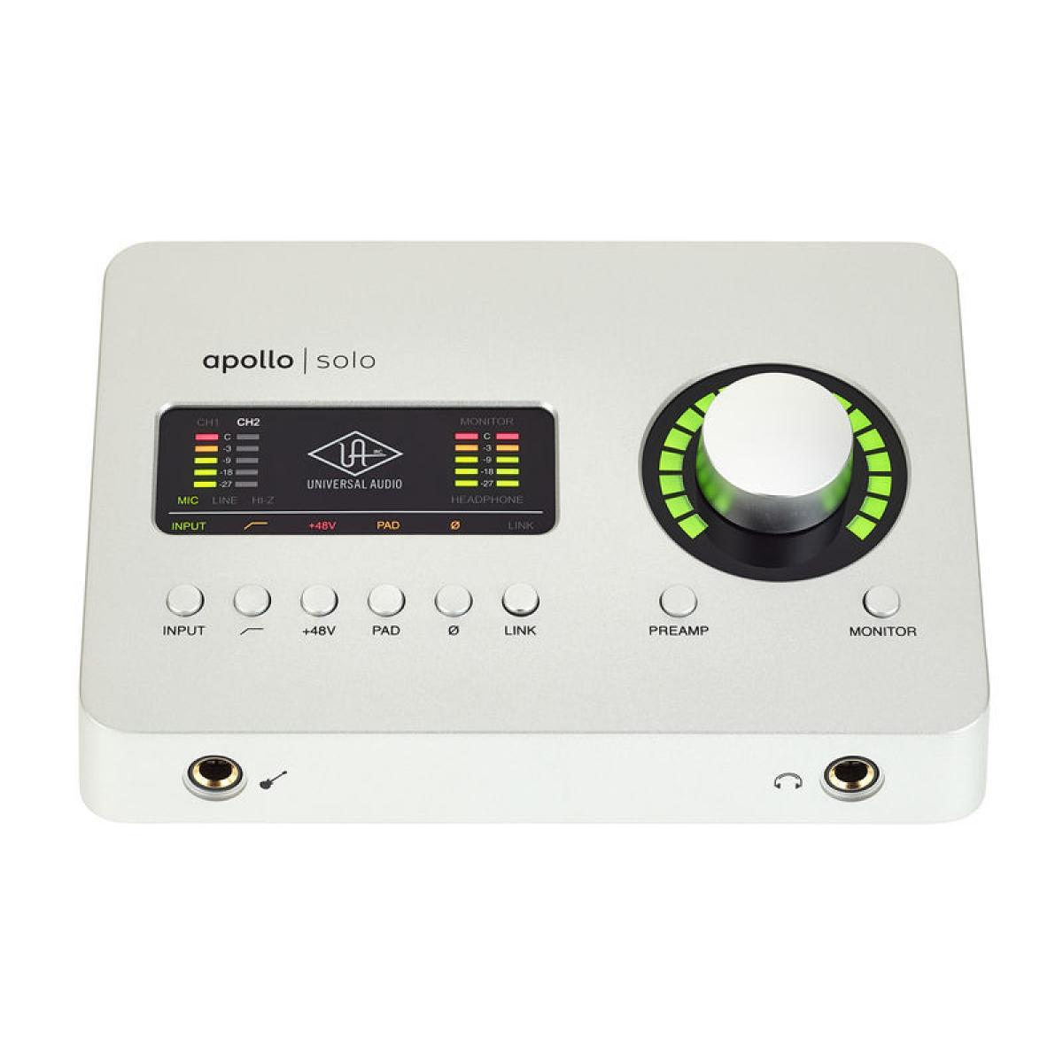 Fidelidad de audio líder en su clase con emulaciones de amplificador de micrófono/guitarra. La interfaz USB Universal Audio Apollo Solo es una interfaz de audio USB compacta de 2x4 con procesamiento UAD-2 SOLO Core en tiempo real para Windows. Esta versión Heritage Edition se completa con cinco plugins UAD adicionales galardonados (por valor de más de 1.800 USD) para una mayor potencia de procesamiento (ver más abajo para más información).