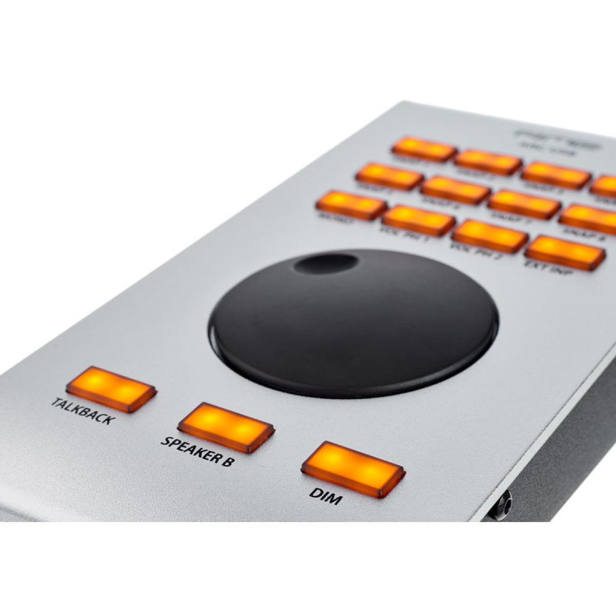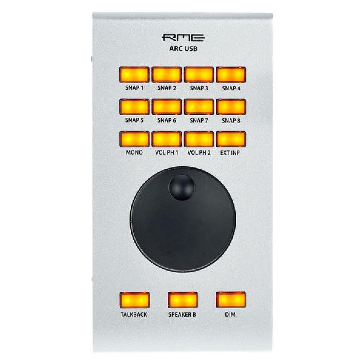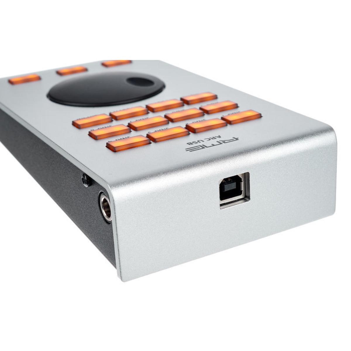Control USB RME ARC para TotalMix FX y Fireface UFX + Funciones clave Unidad de control USB para TotalMix FX Optimizado para la interfaz Fireface UFX + de RME 15 botones iluminados y asignables Se pueden usar para controlar varias unidades Tiene conector de pedal Control USB RME ARC para TotalMix FX y Fireface UFX + descripción general RME ARC USB Control para TotalMix FX y Fireface UFX + es una unidad de control intuitiva diseñada para su uso con TotalMix FX. Optimizado para su uso con Fireface UFX + de RME, el control ARC USB ofrece un control conveniente sobre la sección de enrutamiento y aplicación. La unidad tiene una gran rueda de selección y 15 botones asignables libremente. Además, el control ARC USB tiene un conector para un pedal que se puede asignar individualmente. También se puede utilizar para controlar varias unidades simultáneamente.Descripción completaUnidad de control USB El control USB ARC está diseñado para controlar dispositivos con TotalMix FX, principalmente RME Fireface UFX +. El diseño de las unidades consta de un gran volante para controlar los parámetros y la funcionalidad. Además, el ARC USB tiene 15 botones iluminados libremente que se pueden asignar para controlar los parámetros de efectos, como los niveles seco / húmedo y los niveles de volumen. La unidad también tiene un conector para un pedal que se puede asignar internamente a una variedad de funciones diferentes, lo que agrega otro nivel de versatilidad a su flujo de trabajo. Además de ser un controlador independiente para sus interfaces, el ARC USB también se puede usar para controlar múltiples unidades simultáneamente.CaracterísticasUnidad de control USB para TotalMix FXOptimizado para usar con la interfaz Fireface UFX + de RMEG Gran rueda de selección 15 botones iluminados y direccionables Tiene conector de pedal ser utilizado para controlar múltiples unidades simultáneamente