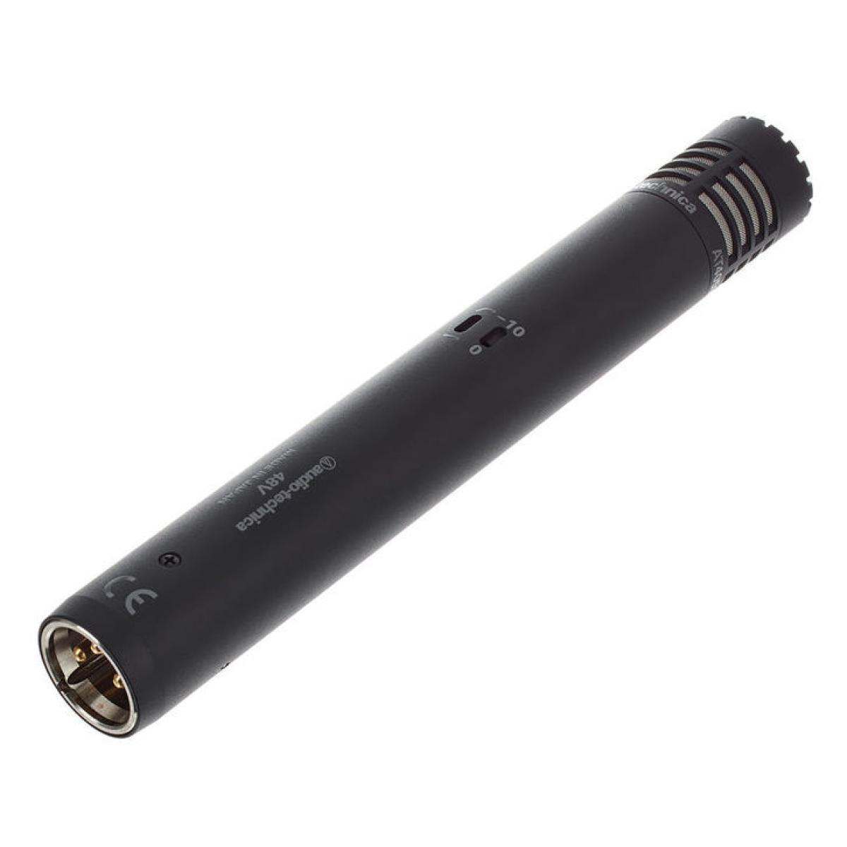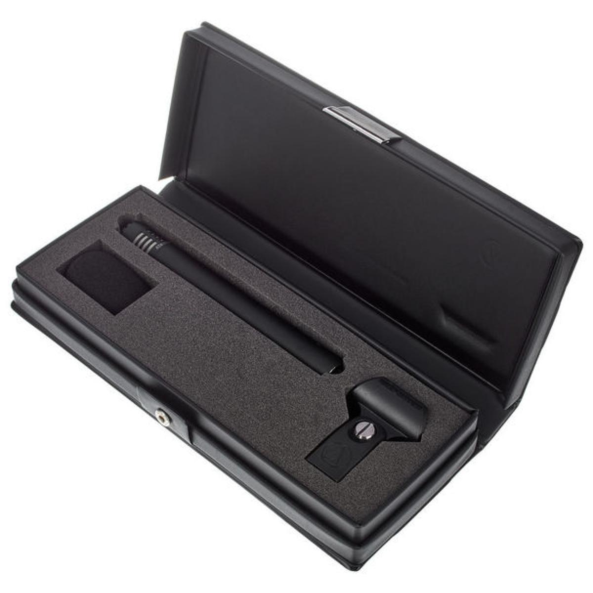 Micrófono Patrón polar: Cardioide 20 - 20.000 Hz Corte bajo conmutable a 80 Hz y pad de 10 dB Diseño modular - que consta de mango AT4900b-48 y cápsula cardioide AT4051b-EL Resistencia de retroalimentación muy alta Impedancia: 50 Ohm SPL pico: 145 dB Potencia fantasma de 48 V Peso: 126 g Dimensiones: 155 x 21 Adaptador de soporte mmAT8405a, parabrisas y estuche incluidos