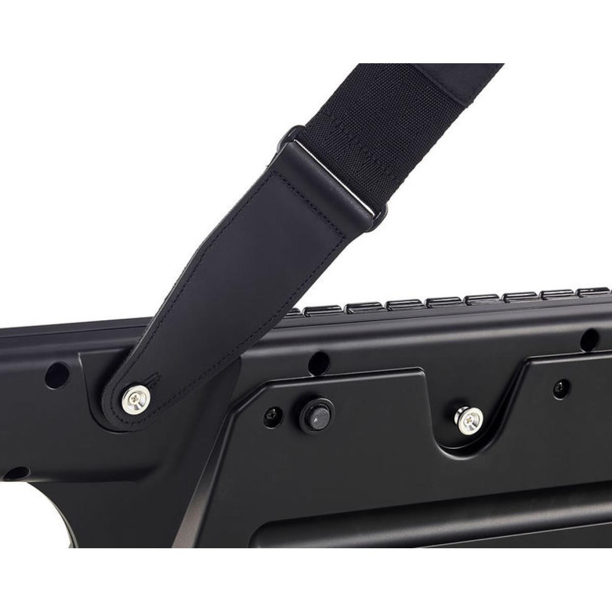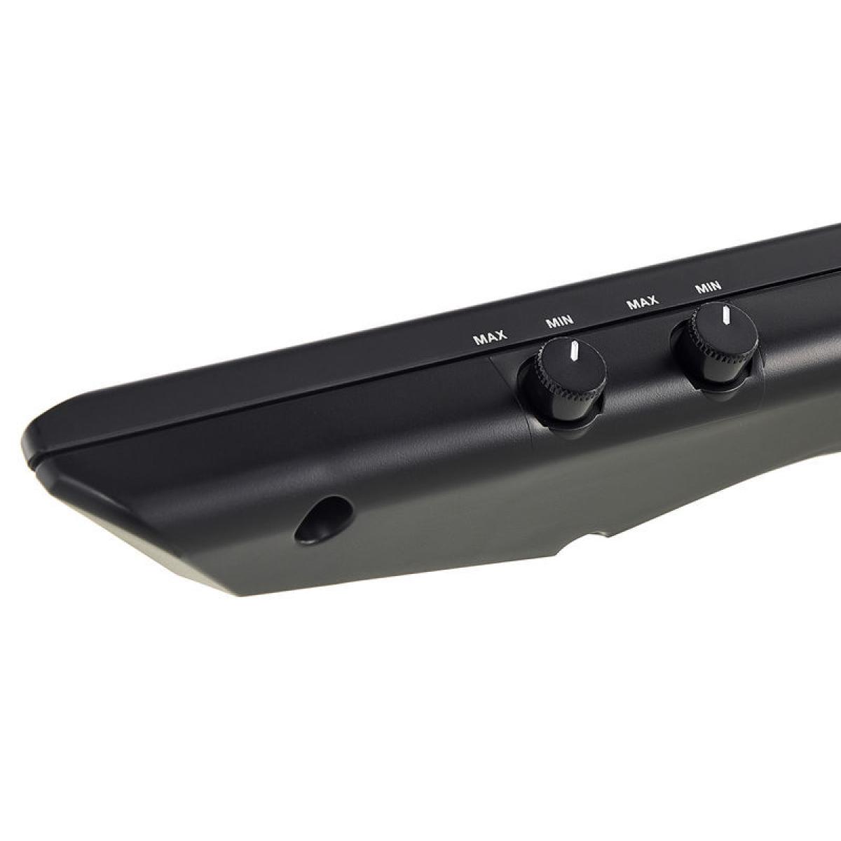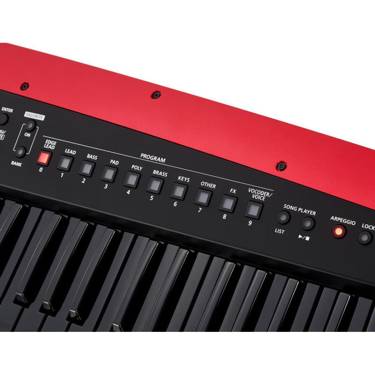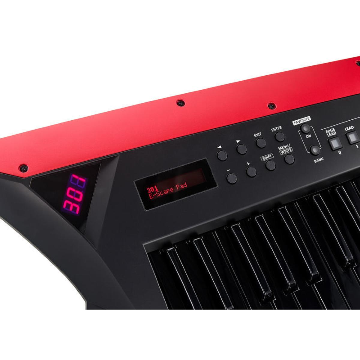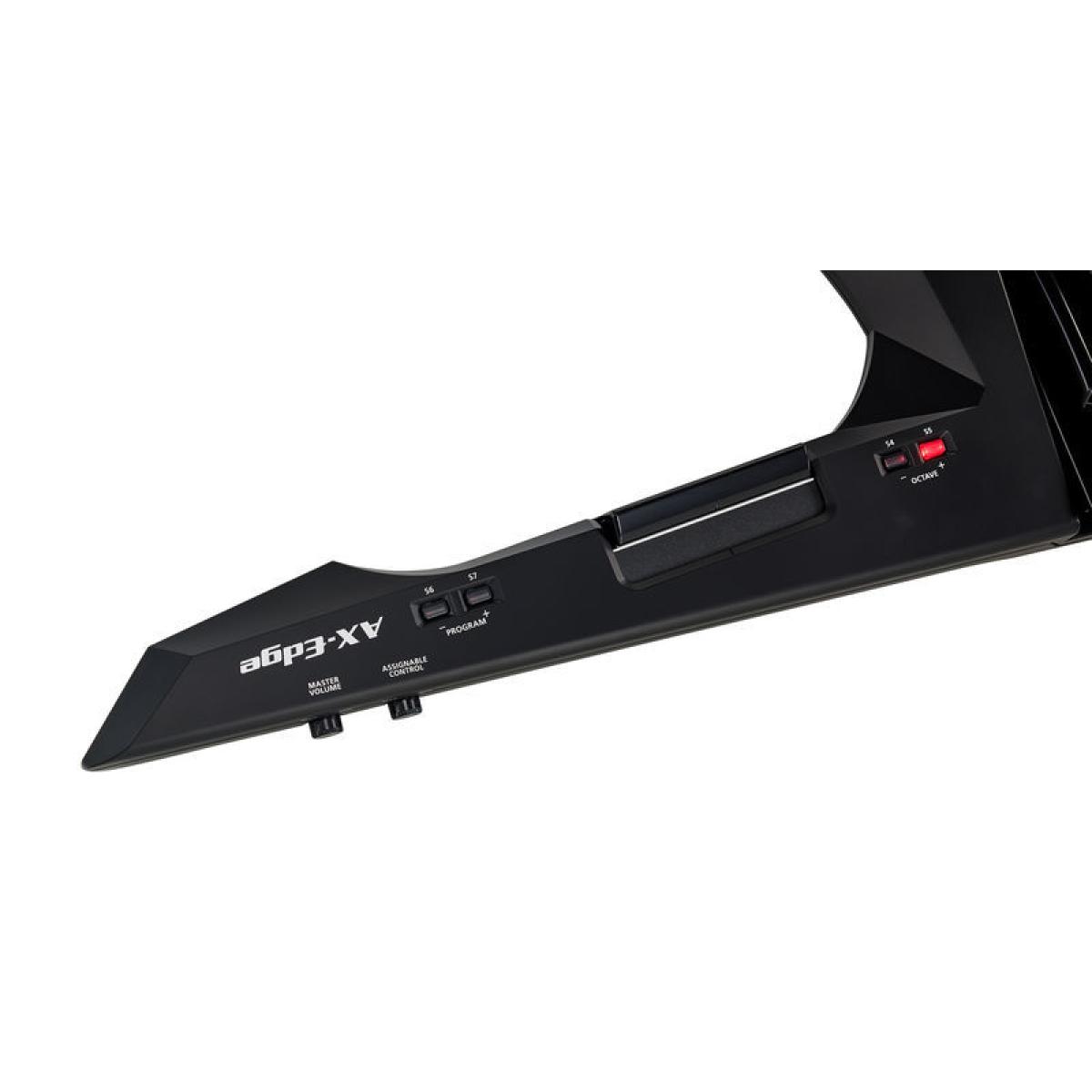 49 teclas de tamaño completo sensibles a la velocidad con aftertouch Bluetooth 4.1 para MIDI y aplicaciones de edición Controlador de cinta, barra de modulación + controladores asignables para interpretaciones expresivas Polifonía de 256 voces 4 partes + codificador de voz con entrada de micrófono 320 programas y más de 500 sonidos preestablecidos para keytaristas 79 partes diferentes multiefectos y Part EQ 79 programas diferentes multiefectos, chorus, reverb, compresor maestro y EQ maestro Capacidad para reproducir archivos de audio desde una memoria USB externa Funcionamiento de la batería hasta 4 horas Salida estéreo 2x 6,3 mm Salida de auriculares de 6,3 mm Entrada / salida MIDI Entrada de micrófono de 6,3 mm Entrada de pedal USB Host USB puerto de memoria Conexión de la fuente de alimentación Dimensiones: 1252 x 291 x 85 mm Peso: 4,2 kg (sin pilas) Color: Negro Incluye fuente de alimentación, correa para el hombro y 1 Edge Blade adicional