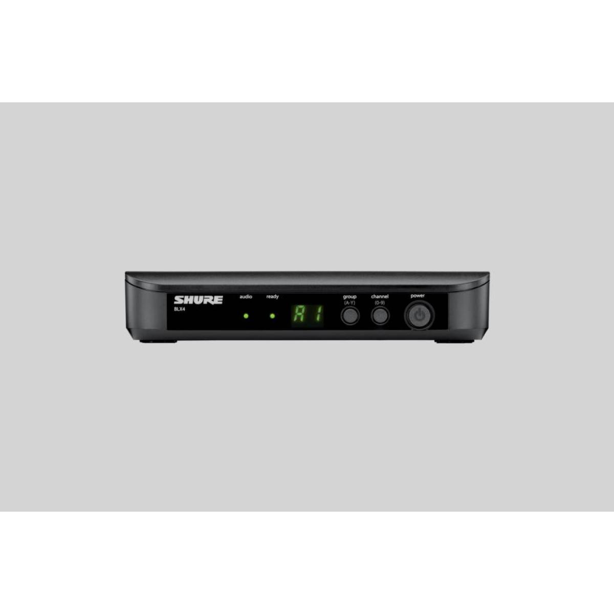 Receptor UHF de la serie BLX Hasta 7 sistemas simultáneamente Tono piloto Diversidad de antena controlada por microprocesador Función de escaneo rápido para detección de frecuencia libre Estuche de plástico Antena integrada Salidas XLR y jack LED de estado de audio Rango de frecuencia: H8E (518-542 MHz)