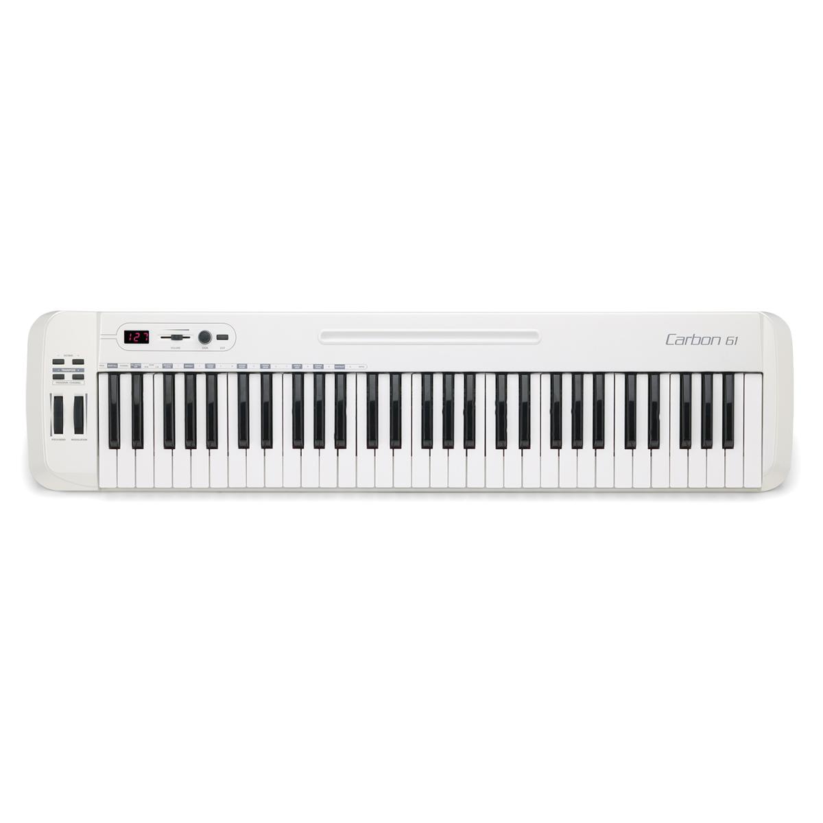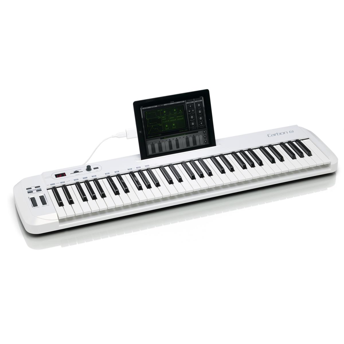 Cuenta con un teclado semi pesado sensible a la velocidad de 61 teclas Codificador de datos asignable y control deslizante de volumen Tecla de edición para ajustar hasta 14 parámetros de control La pantalla LED de 3 dígitos y 7 segmentos brinda retroalimentación en tiempo real Incluye salida MIDI tradicional, entrada y conexiones de pedal de sostenido USB Diseño compacto, perfecto para presentaciones en vivo y aplicaciones de estudio Botones dedicados de transposición y octava, inflexión de tono y modulación Ranura para iPad integrada Almacenamiento para iPad y USB Empaquetado con el software Native Instruments Komplete Elements Especificaciones Teclado: 61 teclas, semi ponderado, sensible a la velocidad Pantalla: 3 dígitos 7 segmentos Controles: atenuador de volumen, botón de datos, botón de edición, botones de octava +/-, botones de transposición +/-, rueda de inflexión de tono, rueda de modulación Funciones: número de programa, restablecer todo, canal MIDI, todo Notas desactivadas, MSB Bank, LSB Bank, Speed Curve, Standard, Assign Trans, Assign Fader, A Assign Button, Assign Mod, Assign Pedal, Instant Pedal Input: 1/4 '' TRSMIDI: MIDI a través de USB, MIDI OUT 5 pines Alimentación: USB Bus Power Accesorios: zapatos de goma iPad en cable USB Elements Native Instruments DVD Elements Dimensiones completas: 792 mm x 217 mm x 78 mm Peso: 2,8 kg