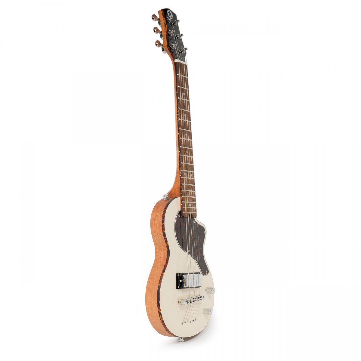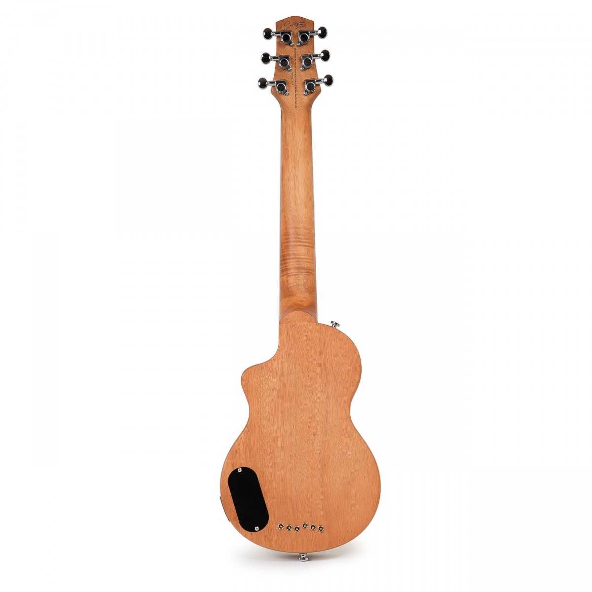 Presentando un diseño elegante y estilizado, esta guitarra de viaje
