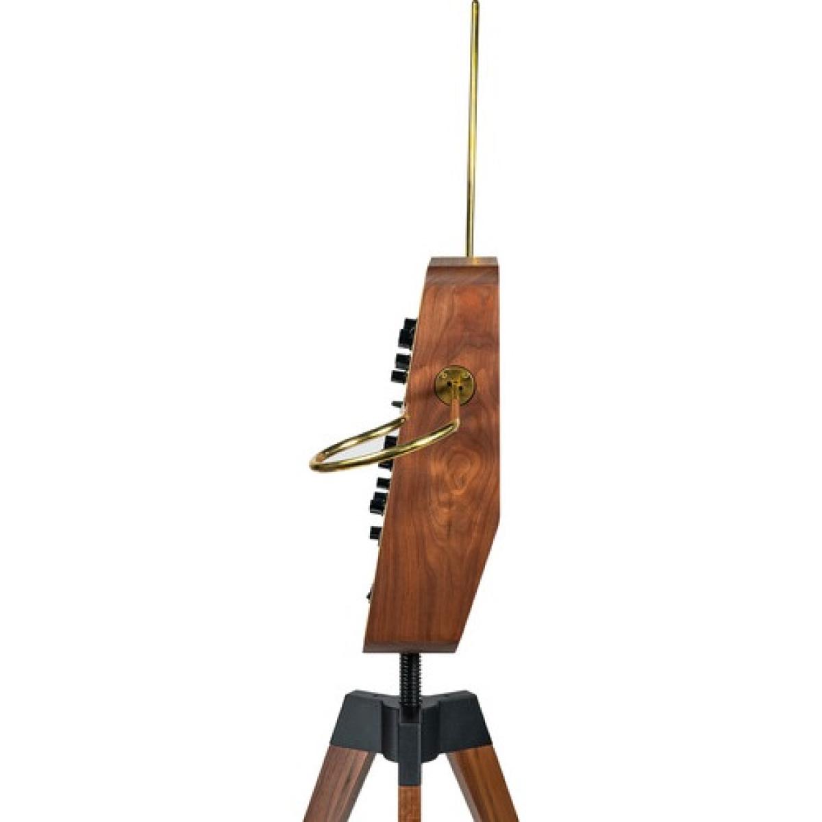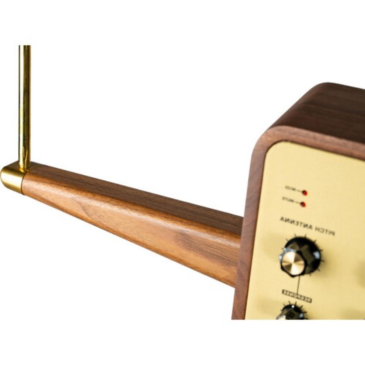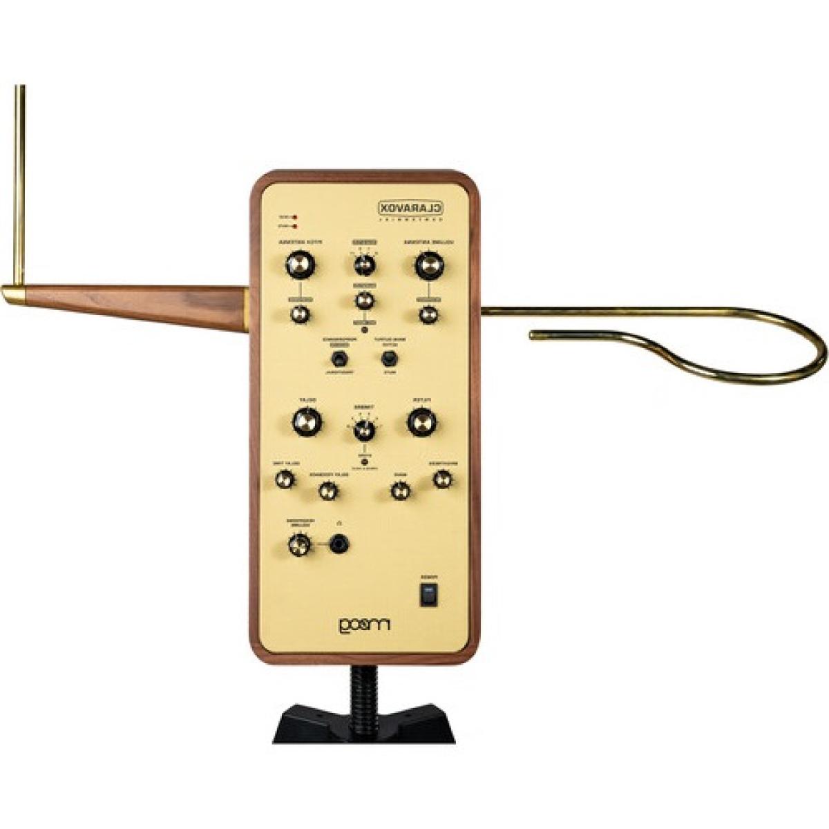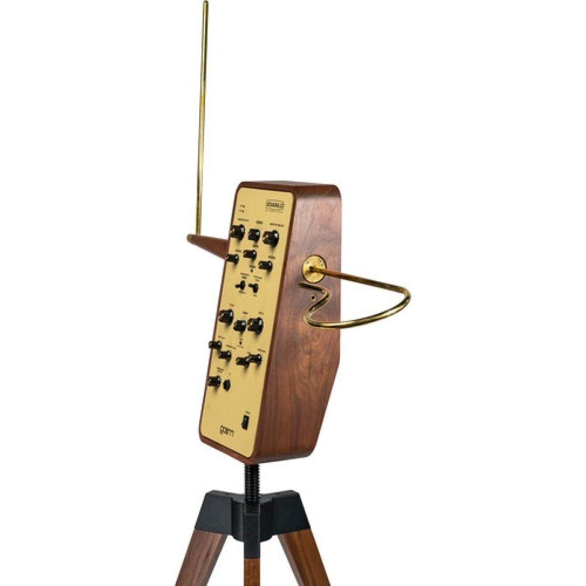 Moog Claravox Centennial Theremin - Versión para zurdos; electrónica basada en circuitos Etherwave Pro de Bob Moog; cambio de modo entre moderno y tradicional; cuantificación de tono y selección de escala en el modo moderno; retardo analógico; memoria preestablecida; calibración de un paso; Integración MIDI; editor de software para acceso rápido a parámetros para Mac / iOS y Windows / Android; conexiones: salida de línea, salida de auriculares, salida de afinador, salida de tono, salida de volumen, entrada de pedal de sostenido, entrada de pedal de expresión, entrada y salida MIDI, USB, conector de alimentación de 12 V CC; incl. brazo de madera extraíble, antena de tono, antena de volumen, herramienta de calibración, certificado de autenticidad y fuente de alimentación; dimensiones sin antenas: 203,3 x 151,3 x 425,7 mm (HxWxD); dimensiones con antenas: 727 x 186,6 x 740 mm; peso: 3,81 kg
