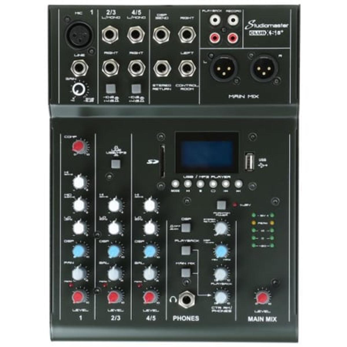 • Studiomaster CLUB XS5+ Mezclador de audio de 1 micrófono y 2 canales con DSP y reproductor USB/MP3 ;