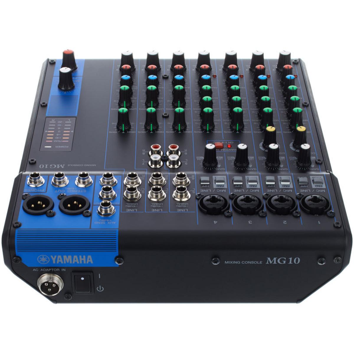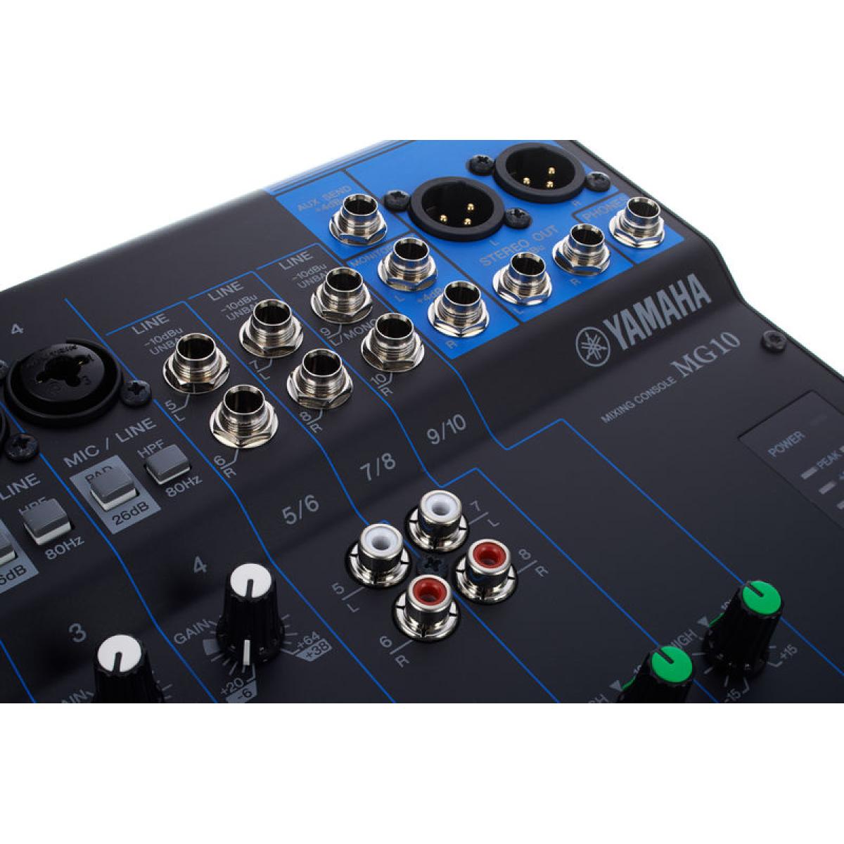 Cada modelo en el MG series cuenta con conectores XLR balanceados en micrófono mono, canales de línea y canales estéreo equipados con XLR. Estas entradas mono aceptan tanto señales de nivel de micrófono como de línea. Dos entradas estéreo tienen XLR y dos conectores de teléfono, aceptando señales de nivel de línea adecuadas para mono o estéreo. El modelo MG10 dispone de un canal estéreo adicional con un par de conectores hembra para los niveles LINE.