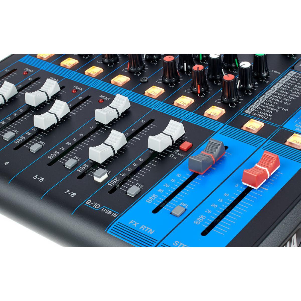 El preamplificador es el punto de partida cuando se trata de mezcladores y son los componentes más vitales para determinar la calidad de su mezcla. Todos los mezcladores dentro del Yamaha MG series cuentan con un preamplificador D-PRE de clase A de estudio para ofrecer más potencia a una impedancia más baja. Este preamplificador de calidad superior posee una gama de frecuencias extremadamente amplia y ofrece un sonido lleno de graves graves y agudos increíblemente suaves con poco o nada de distortion... Esta plataforma pura le permite entrar directamente en el rendimiento sin necesidad de perder tiempo tratando de"arreglar" su mezcla.