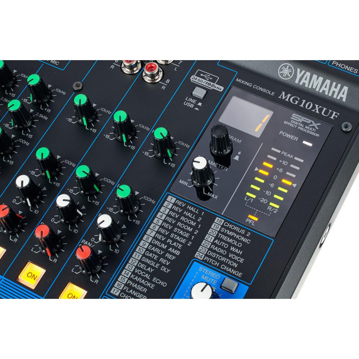 Con una versión actualizada del procesador de efectos SPX, Yamaha el MG10XUF ofrece hasta 24 efectos digitales editables. Estos efectos incorporados proporcionan profundidad adicional a un sonido general o dan un impulso al rendimiento de la live banda. Con increíbles reverb y delay efectos, el mezclador ofrece un sonido natural lleno de claridad.