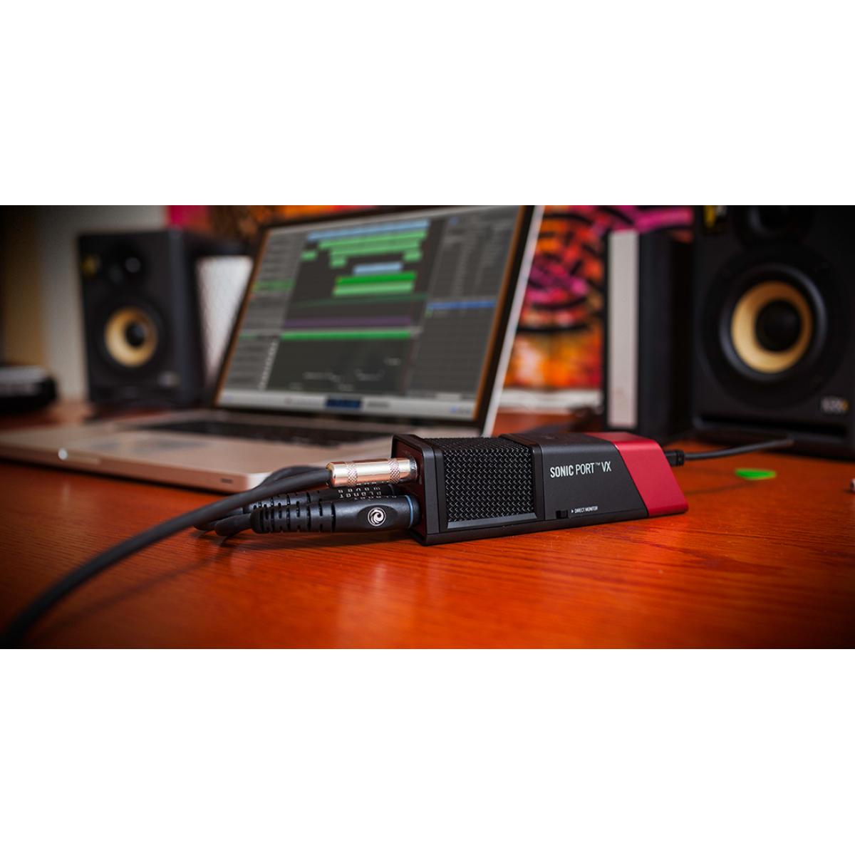 La Line 6 Sonic Puerto VX hace posible para creativos grabar canciones completas en cualquier inspiración huelgas. Un guitarra o un bajo de entrada características 120dB de rango dinámico de sonido incomparable y mejor-en-clase dinámica, mientras que una entrada de línea estéreo le permite grabar llaves, cajas de ritmos, mezcladores de DJ y otras fuentes. Latencia cero monitoreo de medios que puede grabar sin distracciones y con nivel profesional 1/4 '' salidas estéreo, usted puede fácilmente conectar monitores de estudio y perfeccionar sus mezclas. Con Sonic Puerto VX, el mundo es tu estudio.
