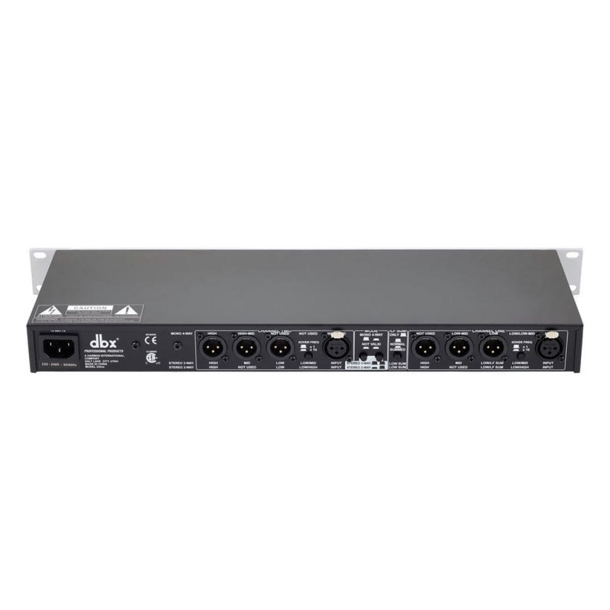 Estéreo de 3 vías Mono de 4 vías Filtro de corte bajo de 40 Hz para ambos canales Interruptor de inversión de fase en todas las salidas Interruptores de factor x10 Fuente de alimentación interna 2 entradas XLR 6 salidas XLR Formato: 19 "/ 1U
