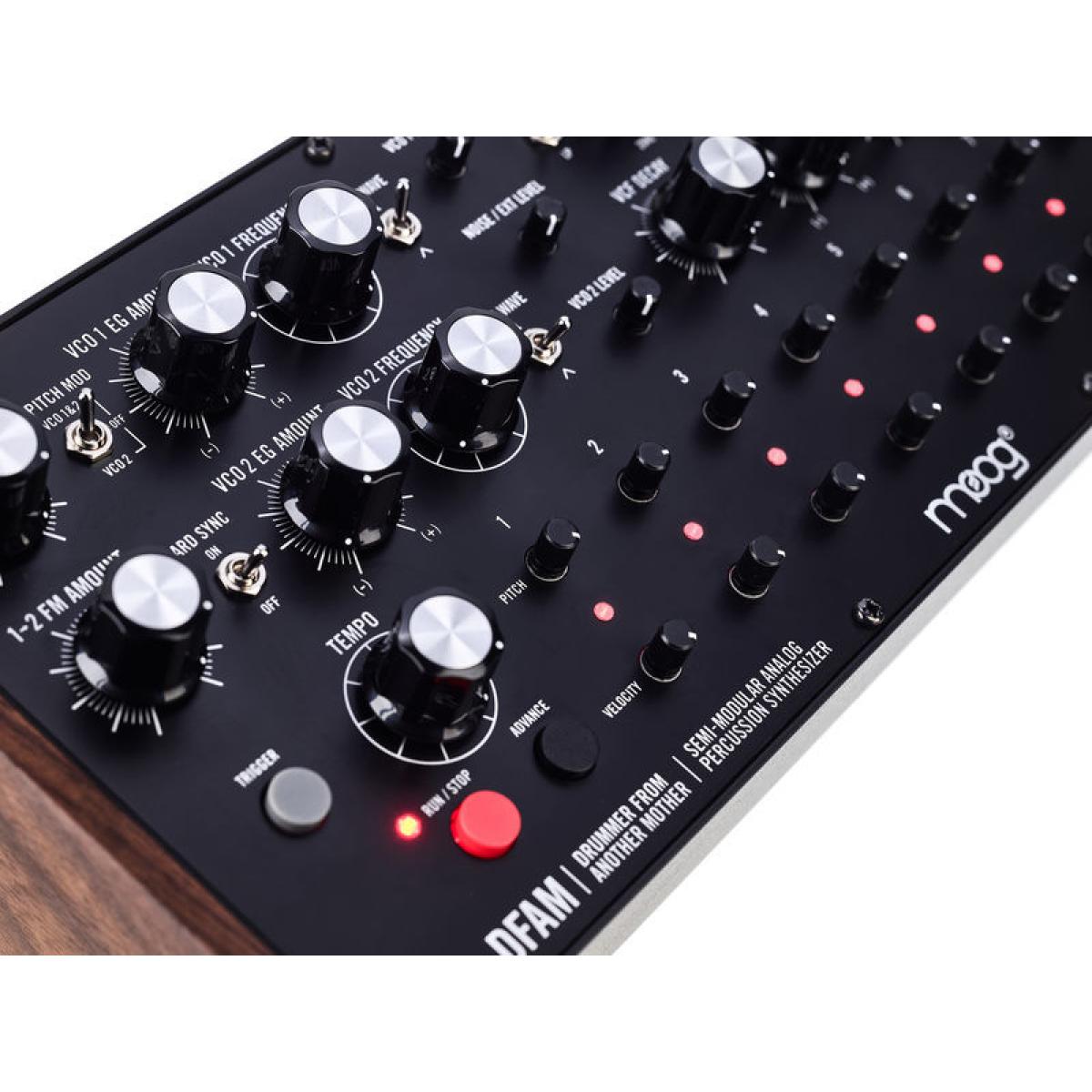 El sintetizador de percusión analógico semimodular Moog DFAM es un dispositivo analógico interactivo potente. Cuenta con dos osciladores con filtros analógicos para moldear sus sonidos a su antojo. No necesita experiencia de ningún tipo y es por lo tanto ideal para principiantes. El DFAM cuenta con un patchbay que le permite experimentar con una amplia gama de sonidos y comportamientos. El Moog DFAM le permite empezar a sintetizar de un modo fácil y rápido. El DFAM cuenta con un rango de parámetros que le ofrece el control más absoluto por lo que es ideal para actuaciones en directo.