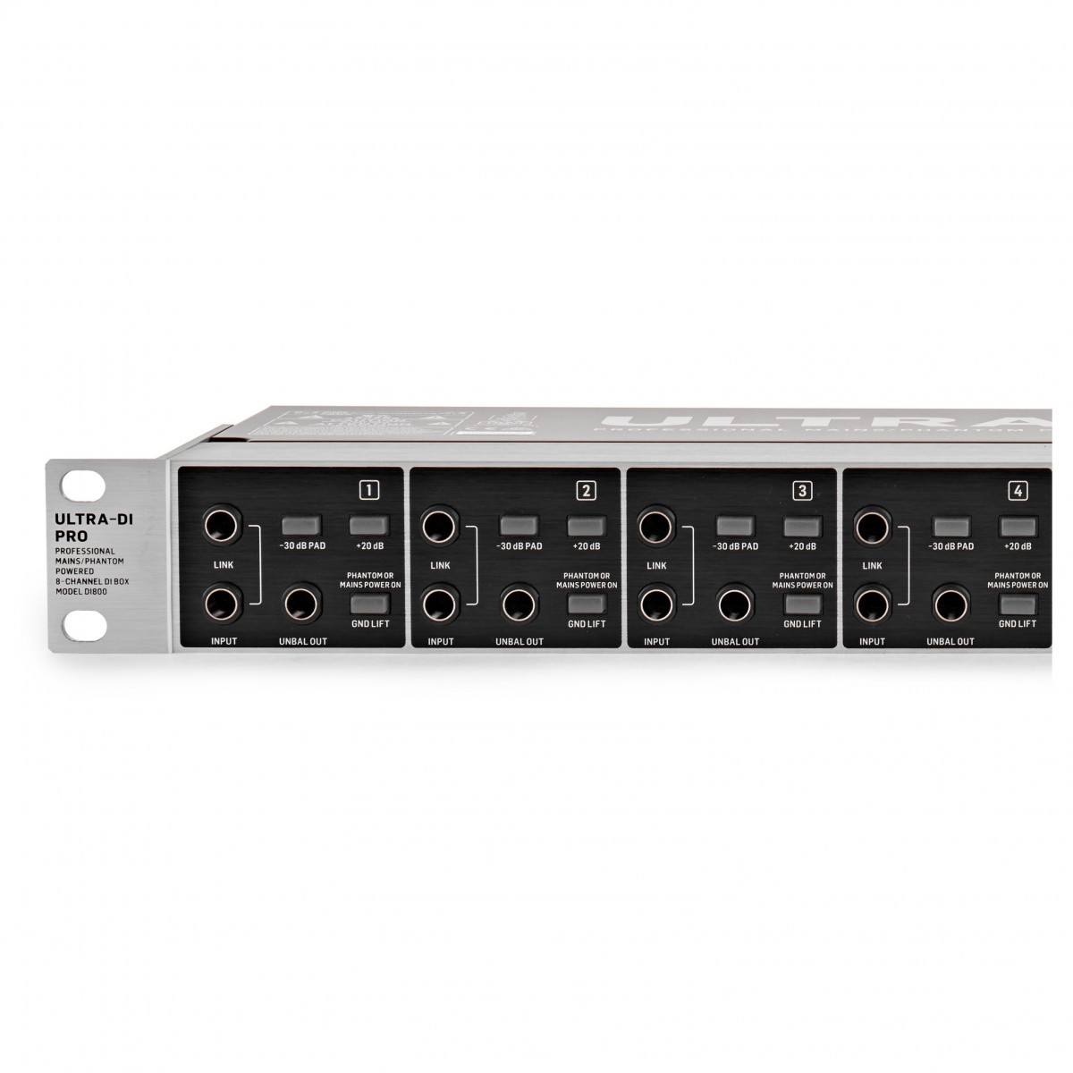 • Caja de inyección directa de 8 canales con fuente de alimentación principal/fantasma opcional