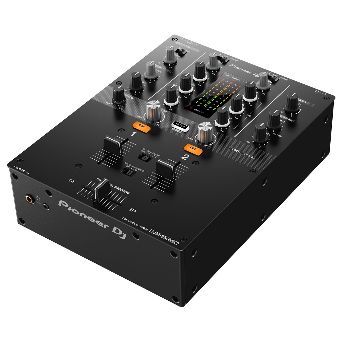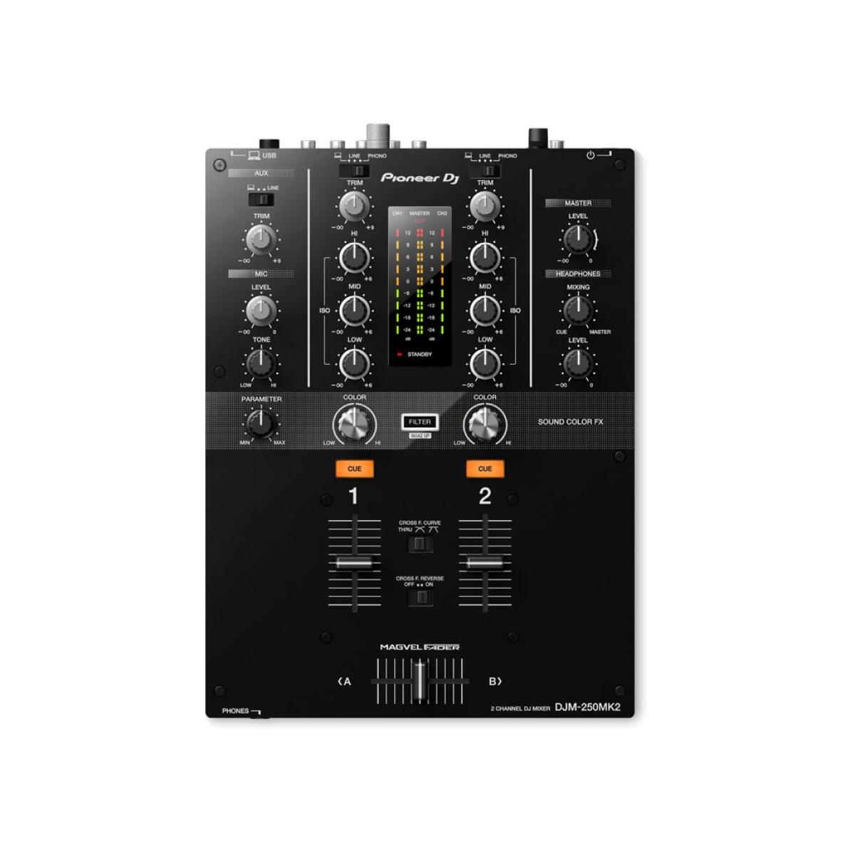 El mezclador Pioneer de DJ de 2 canales DJM-250MK2 está basado en el exitoso modelo DJM-250 e incluye nuevas actualizaciones y mejoras. Esta mesa cuenta con una configuración de 2 canales y una tarjeta de sonido integrada con faders MAGVEL de alta calidad. La Pioneer DJM-250MK2 también incluye el filtro de Sound Color FX en cada canal, heredado de la DJM-900NXS2, lo que permite añadir efectos fácil y rápidamente sobre la marcha, girando los botones de parámetros para controlar la textura. La tarjeta de sonido USB integrada permite conectar el mezclador directamente a su PC para obterner la mejor calidad de audio y grabar las mezclas directamente en el disco duro. Además, la DJM-250MK2 viene con una clave de licencia libre para Rekordbox DVS para obtener el mejor rendimiento CDJ a la más baja latencia.