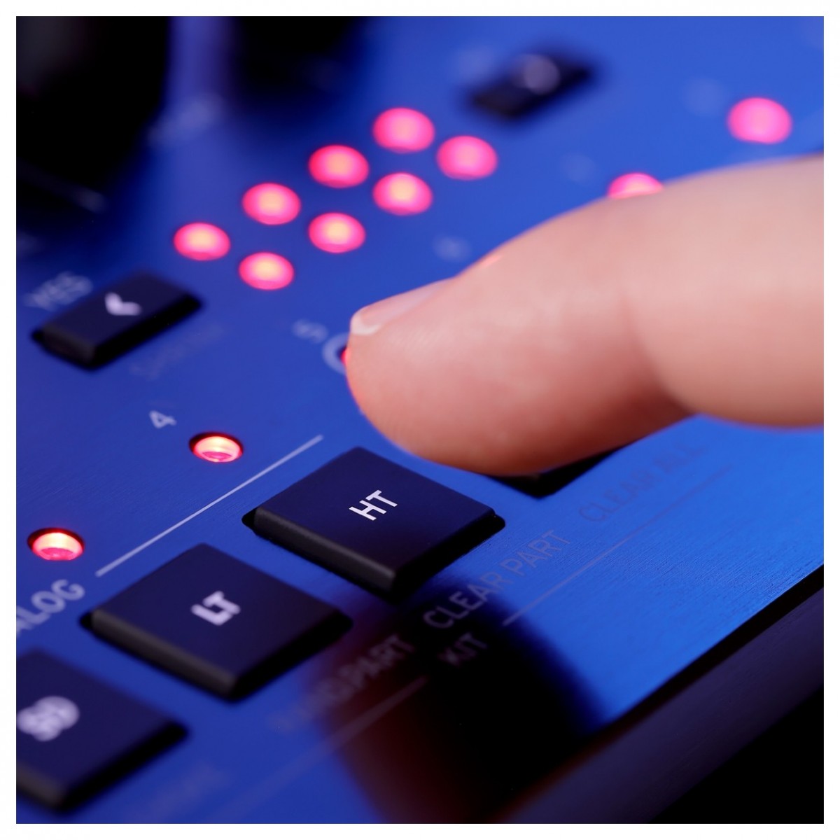 Equipado con cuatro voces de batería analógicas y seis partes basadas en