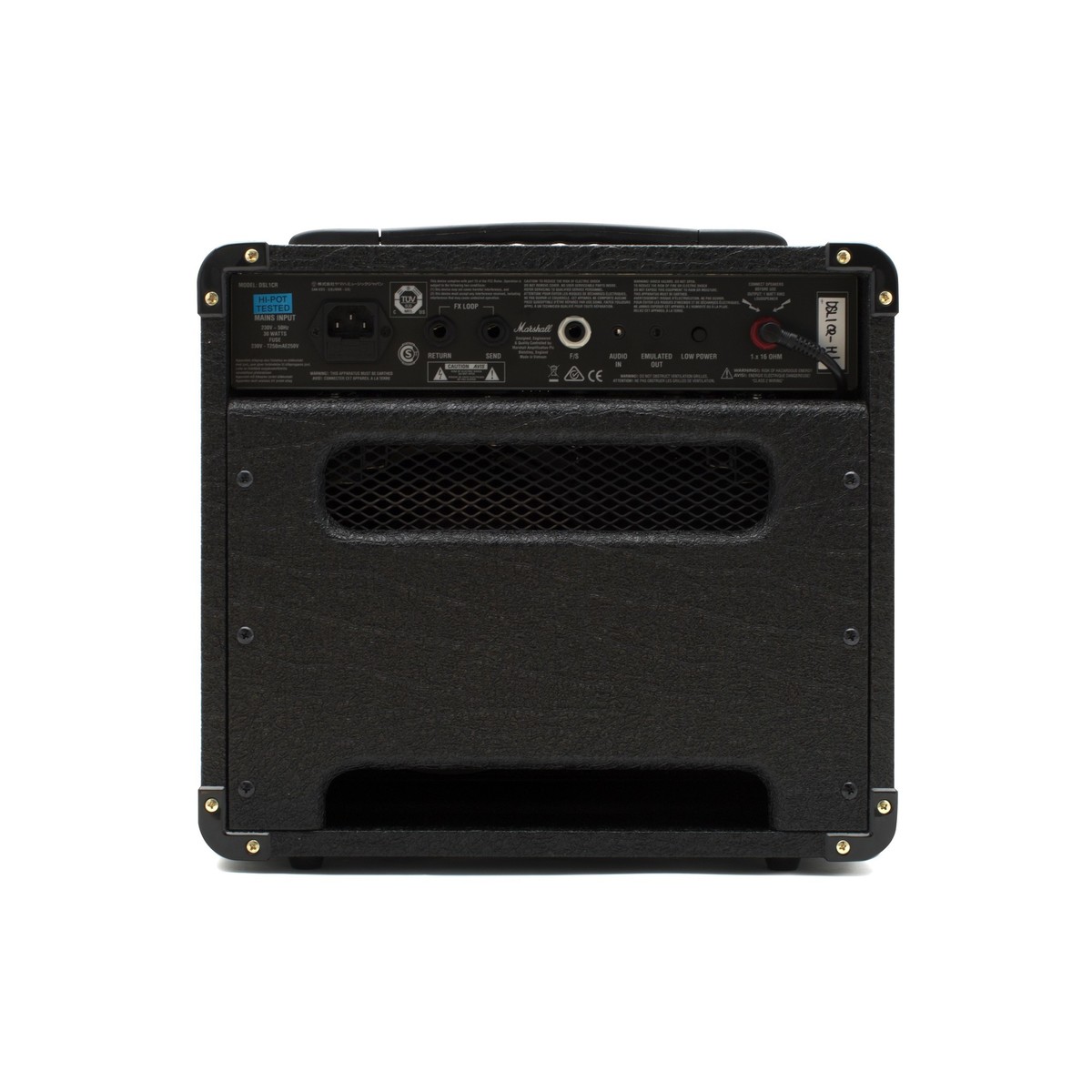 El Marshall DSL1HR 1 es un cabezal de válvula perfecto para las necesidades de su casa o de su estudio. Cuenta con 1 w de volumen con potencia de salida ajustable. A pesar del bajo potencial de volumen del amplificador este dispositivo ofrece la respuesta orgánica y la calidez que los guitarristas aman de los amplificadores antiguos. El amplificador incluye reverb, dos canales para conmutación de sonido versátil y ecualizador. Cuenta con un altavoz Celestion de 8'' para proyectar el sonido en un modo portátil. También cuenta con un modo de grabación en silencio para que funcione sin altavoz. Además de todo esto cuenta con una salida Softube para el sonido profesional. Este dispositivo es un pack que cuenta con todas las cosas necesarias para utilizarlo tanto en casa como en el estudio.
