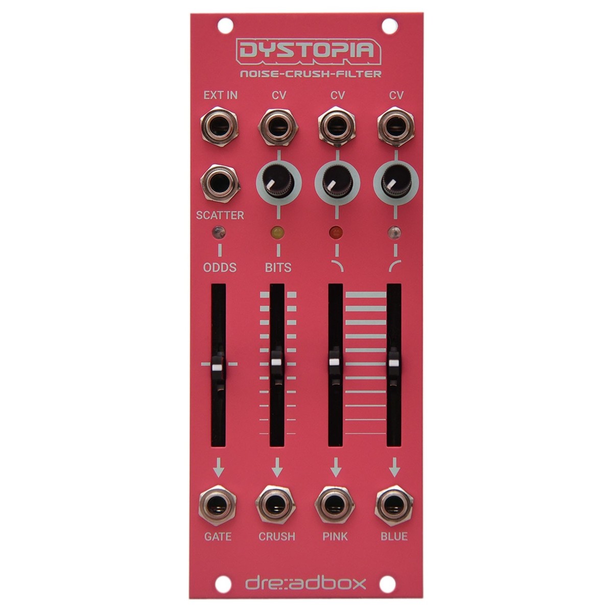 Dreadbox Dystopia Noise / Crush / Filter Características principales Módulo de ruido para Eurorack, que también funciona como un triturador de bits Parte del extenso sistema de módulos de color de Dreadbox Las fuentes de ruido varían desde blanco, rosa, dispersión e incluso digital Completamente controlado por CV para crear parches dinámicos Dreadbox Dystopia Descripción general de ruido / aplastamiento / filtro Gestiona una variedad de fuentes de ruido. Filtra y aplasta tu señal. El Dreadtop Dystopia Noise / Crush / Filter multifuncional está diseñado para usarse en una variedad de parches diferentes. Desde el medio ambiente hasta el hogar ácido, hay algo para todo en este increíble módulo. La distopía es parte de la increíble variedad de módulos cromáticos; estos módulos son ideales para iniciar o expandir rápidamente su sistema Eurorack. Con solo 10 HP de tamaño, el Dystopia es un elemento adecuado para su sintetizador Eurorack en constante evolución. Descripción completa Ruido, aplastamiento y filtro La distopía es ideal para patches complejos, en los que el sonido se puede utilizar para espesar el sonido o filtrar las frecuencias. Tiene un generador de ruido que puede proporcionar tipos de ruido blanco, blanco a rosa, blanco a azul, disperso y digital. El ruido digital es brillante ya que se puede utilizar como generador de puerta aleatoria. La etapa del triturador de bits puede variar de un segundo a 8 kHz, lo que significa que puede obtener distorsiones realmente gruesas, ideal para una variedad de estilos de música. También puede hacer referencia a todas las señales a través de los cuatro LED, lo que ayuda a determinar el nivel al que el módulo está bombeando fuentes de ruido. Características Generador de ruido (blanco, blanco a rosa, blanco a azul, dispersión, digital, trituradora de bits con rango de 1 segundo a 8 kHz El ruido digital también se puede utilizar como generador de puerto aleatorio Doble paso (paralelo) 12 dB de paso bajo y filtro de paso alto Interno se cancela y la señal externa está en proceso. Indicador LED para todos los controles para ilustrar la suma actual de CVE Especificaciones Profundidad: 35 mm Ancho: 10 HP