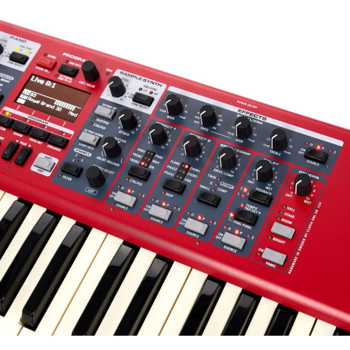Nord Electro 6 ofrece una sección de efectos potente y versátil, con todos los efectos en estéreo. Todos los efectos se modelan a partir de los pedales clásicos y se pueden asignar a cualquiera de las secciones de Órgano, Piano o Sintetizador. Ofrece una gama de diferentes efectos para texturizar y mejorar los sonidos, con la opción de ajustar. Incluye tremolo, phaser, chorus, pan, wah, RM, flanger, vibe, y reverb. El reverb ahora cuenta con un nuevo modo brillante. Esto le permite crear una imagen mucho más brillante y brillante reverb.