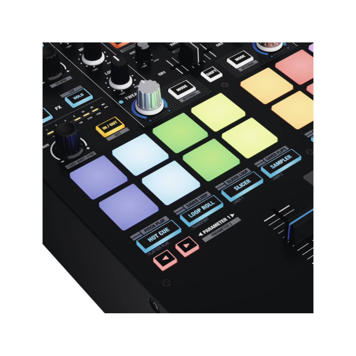 16 pads de rendimiento RGB grandes y sensibles a la velocidad: controle hasta 12 modos de rendimiento por deck