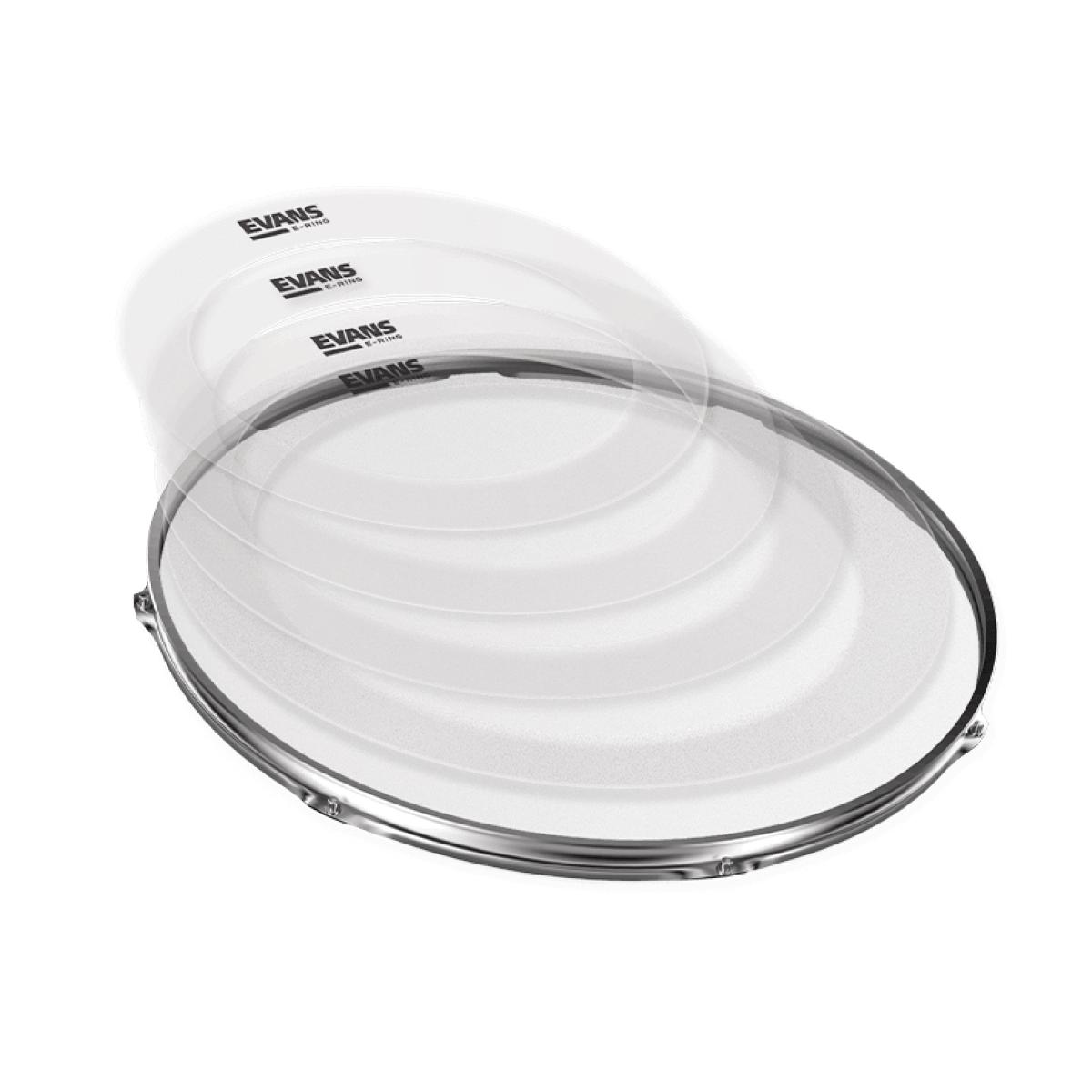• Los EVANS E-Ring Packs contienen anillos de control de sobretonos externos fáciles de usar que "flotan" en la superficie de un parche de tambor para eliminar los sobretonos y aplanar el sonido del parche, lo que permite una afinación más fácil. ;
