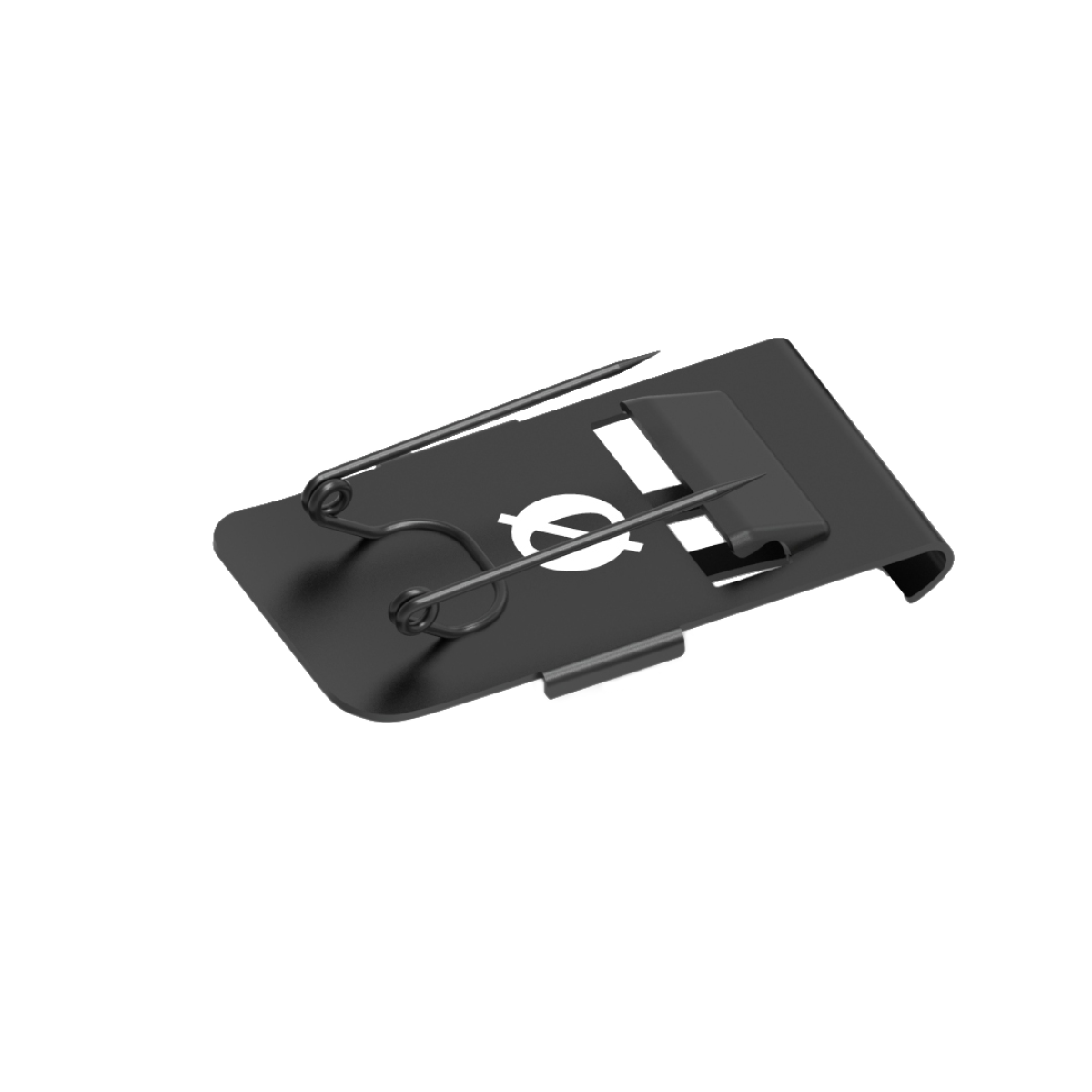 • CrossClip permite que el transmisor se monte discretamente verticalmente en cualquier orientación VampireClip se puede usar para sujetar el transmisor a la ropa o tela usando el pasador de doble diente integrado