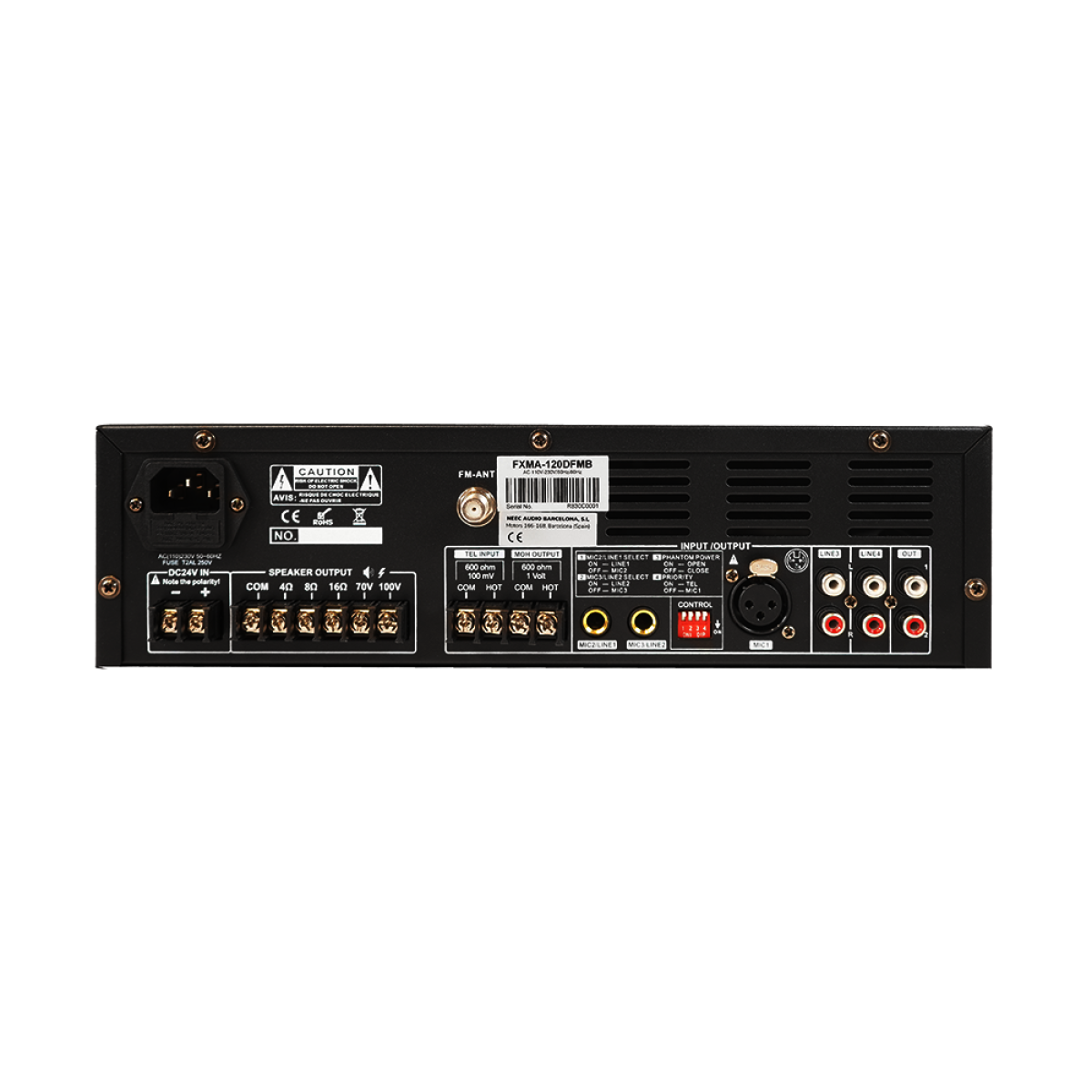 • Salida de altavoz: 100V, 70V, 4Ohm, 8 Ohm ó 16 Ohm ;