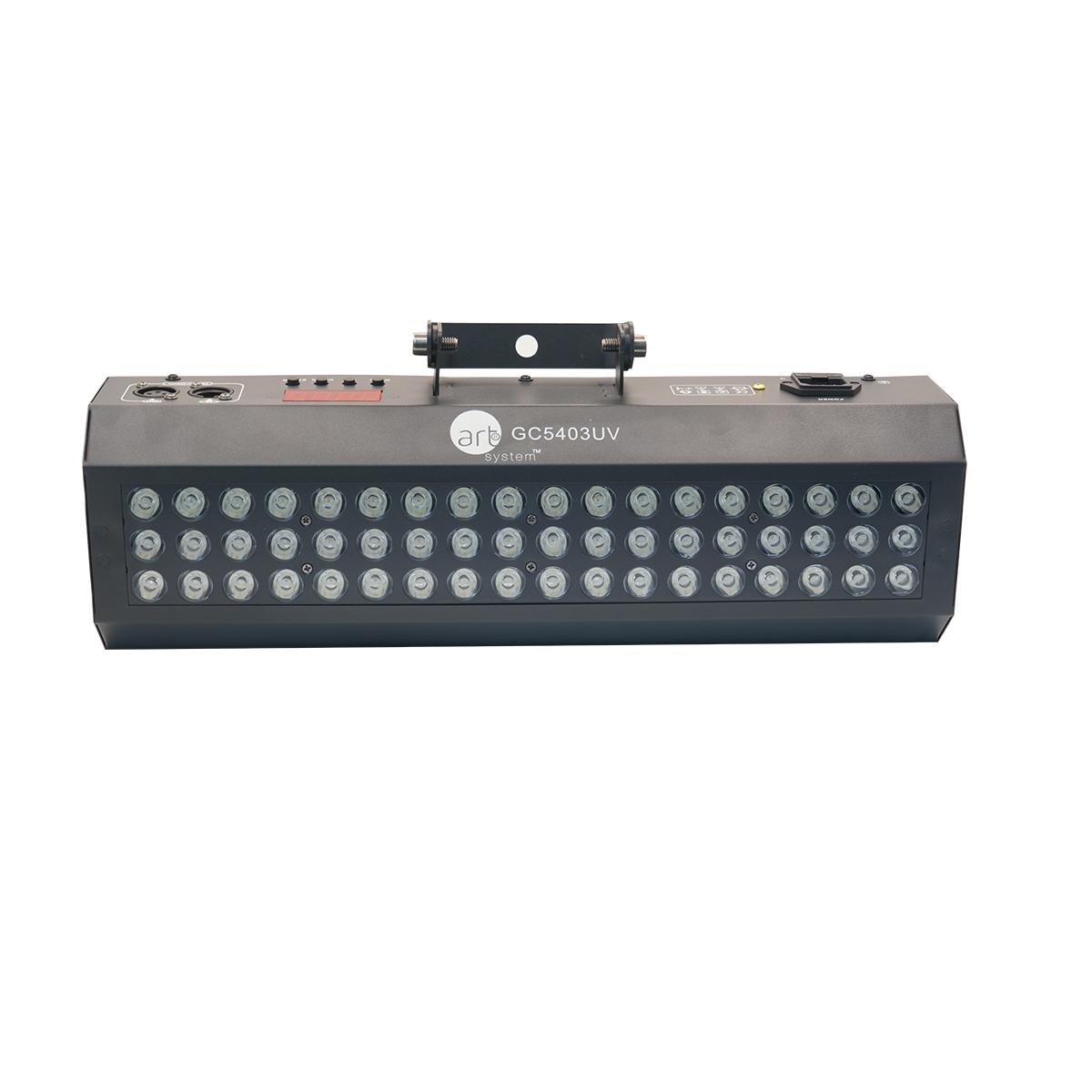 Controlado mediante un mando a distancia, este sencillo proyector LED UV se recomienda para instalaciones que requieran un efecto de luz negra.
