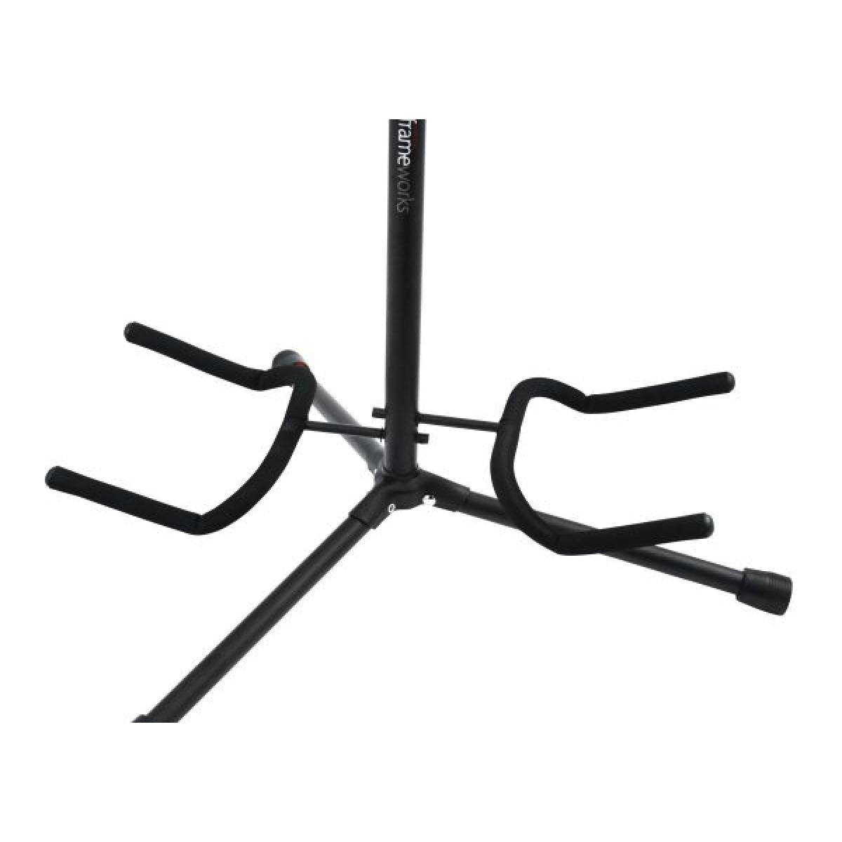• Soporte doble para guitarra Frameworks con tubos de alta resistencia y almohadillas de goma para instrumentos ;